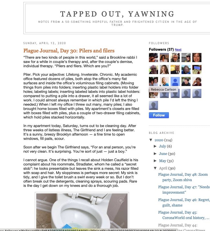I'm keeping a Covid-19 journal. Here's the latest entry, discussing the difference between pilers and filers and the power of scrubbing.