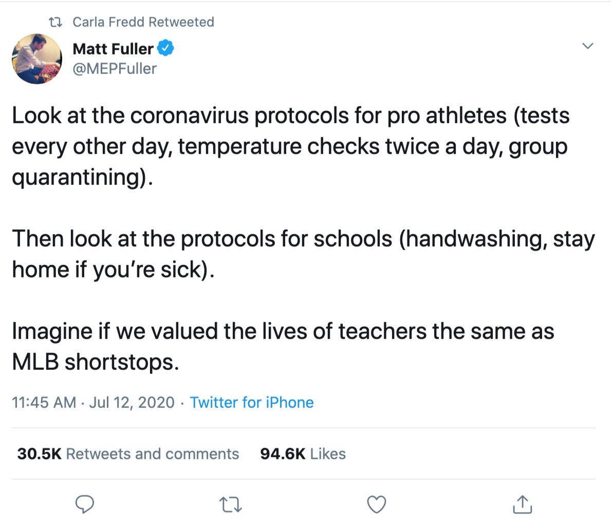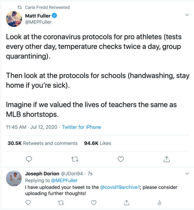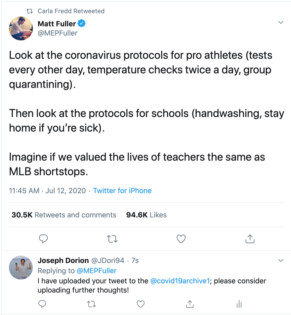 This item was added TAGS v6.1.9.1. I originally searched under the hashtag #schools. Within that search, I have chosen to add the following tweet because it highlights the priority levels in the United States for different types of workers.