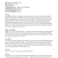 Sure. Well, I'm a museum developer at the Chippewa County Historical Society. And so I work in Chippewa Falls, but I live in neighboring Eau Claire [unintelligible] in the town of Union. And here, the –this museum is closed, for the pandemic, closed to the public. It has very limited hours anyway. Even when it's open, it's only open Tuesday. The reason they hired me was to develop a new museum, which is going to be built [unintelligible], and that museum will be open certainly when everything is like normal. We'll be open some six days a week. So right now, I have been there since I've been here, an army of one most days a week except on Tuesdays. So one of the things that's probably different, my experience, and maybe in most people's is that my work, life hasn't changed very much at all. I still go in to work every day, I still don't see anybody. And so that was true before the state shut down before the stay at home order was –and still is true now. So the next thing, that part of it doesn't feel much different, except it doesn't feel much different than it did before the pandemic caused this big check in. And also, weirdly enough this particular coincidence, I had moved back from Oregon, [unintelligible] as long as I could. And that worked for quite a while. But she was slipping badly on here. Back and that was in February, February 4. And so this was before God, for the sacred home. So I have been tied to a home life. Making breakfast for her. We're getting some people in the back eating. And so because she went into memory care and life, then I might take care of my social life. And my evening, our living changed that much anyway, because I've been sort of a homebody while she was at home, and very, very shortly, I'm thinking, well, I should go out to a coffee shop. At this chance is tucked away. And then of course, fairly shortly, and of course, starting [unintelligible] so probably differently than almost anybody else. In America, my life has changed tremendously for a couple of different [unintelligible]