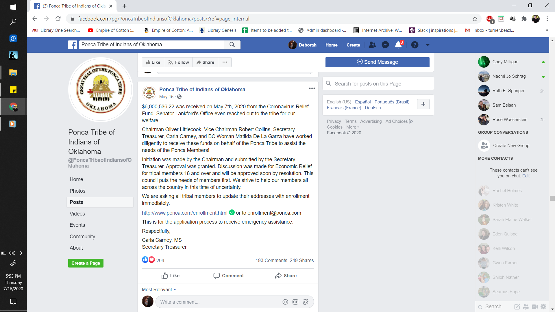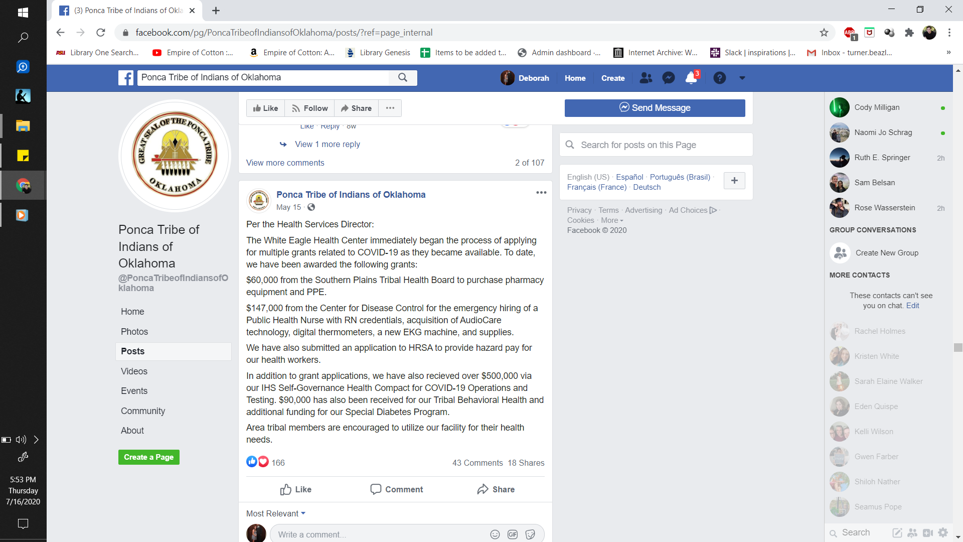 "Per the Health Services Director: The White Eagle Health Center immediately began the process of applying for multiple grants related to COVID-19 as they became available. To date, we have been awarded the following grants:"