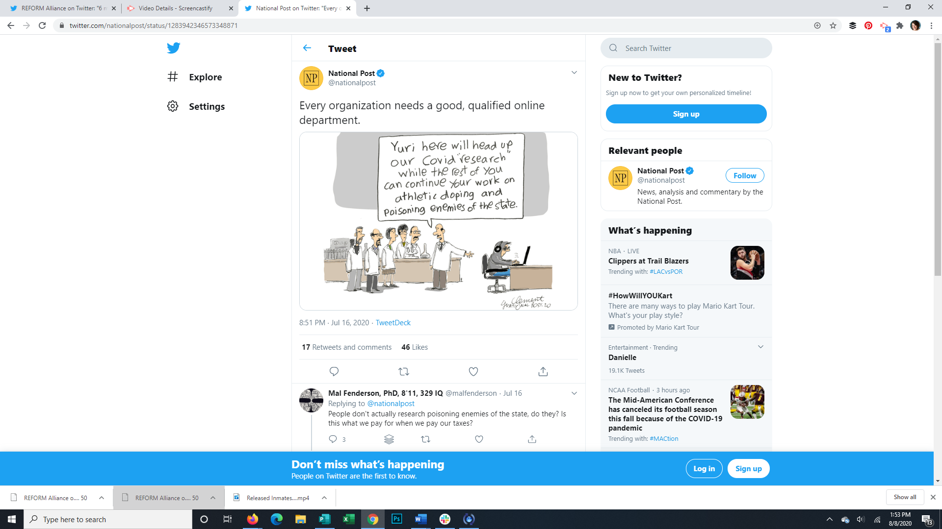 "Our Covid 'research'" editorial comic