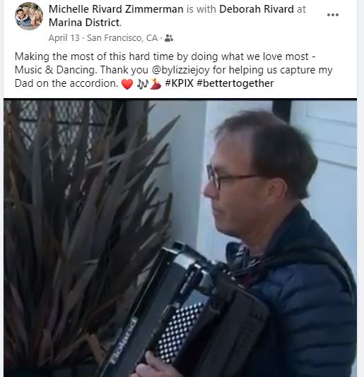 A month into shelter-in-place orders, the streets of San Francisco's Marina District were filled with the sound of a local resident playing an accordion outside. People came out to share in the joy of music during this difficult time.