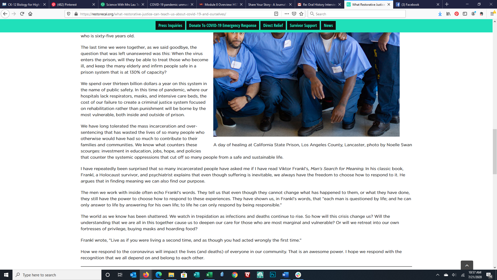 What Restorative Justice Can Teach Us About COVID-19 – And Ourselves.