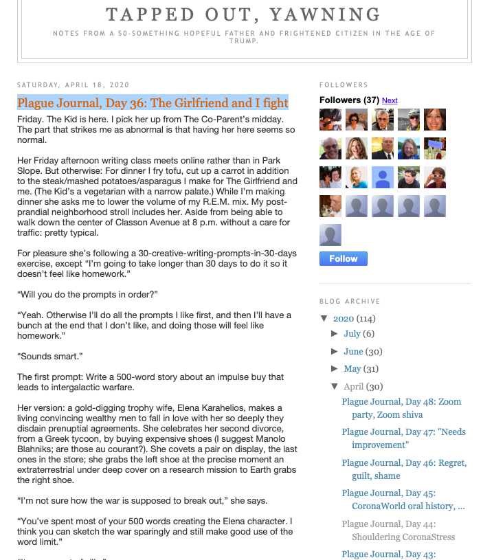 I'm keeping a Covid-19 journal. Here's the latest entry, detailing the first CoronaWorld fight with The Girlfriend and the long-awaited arrival of The Kid.