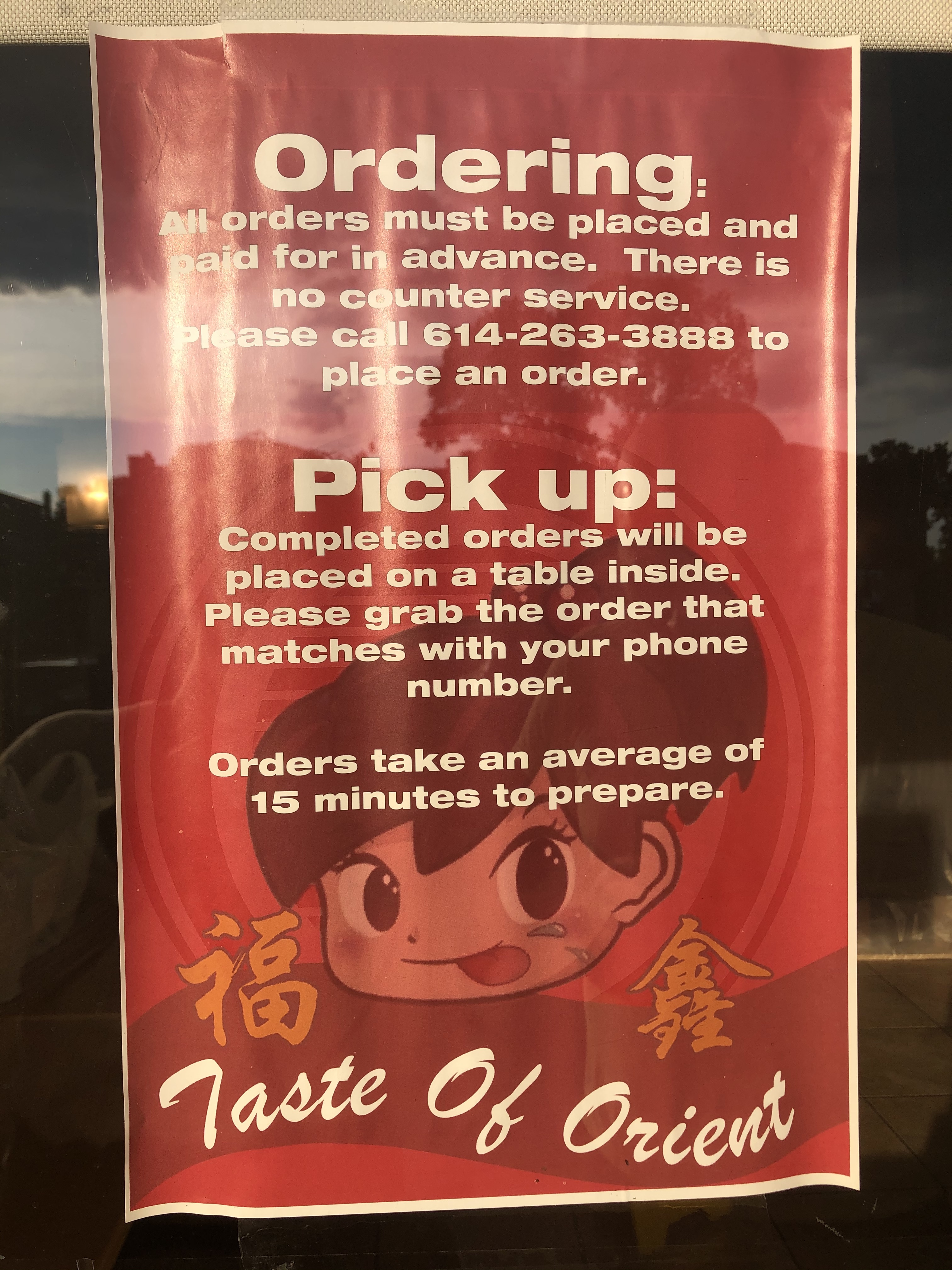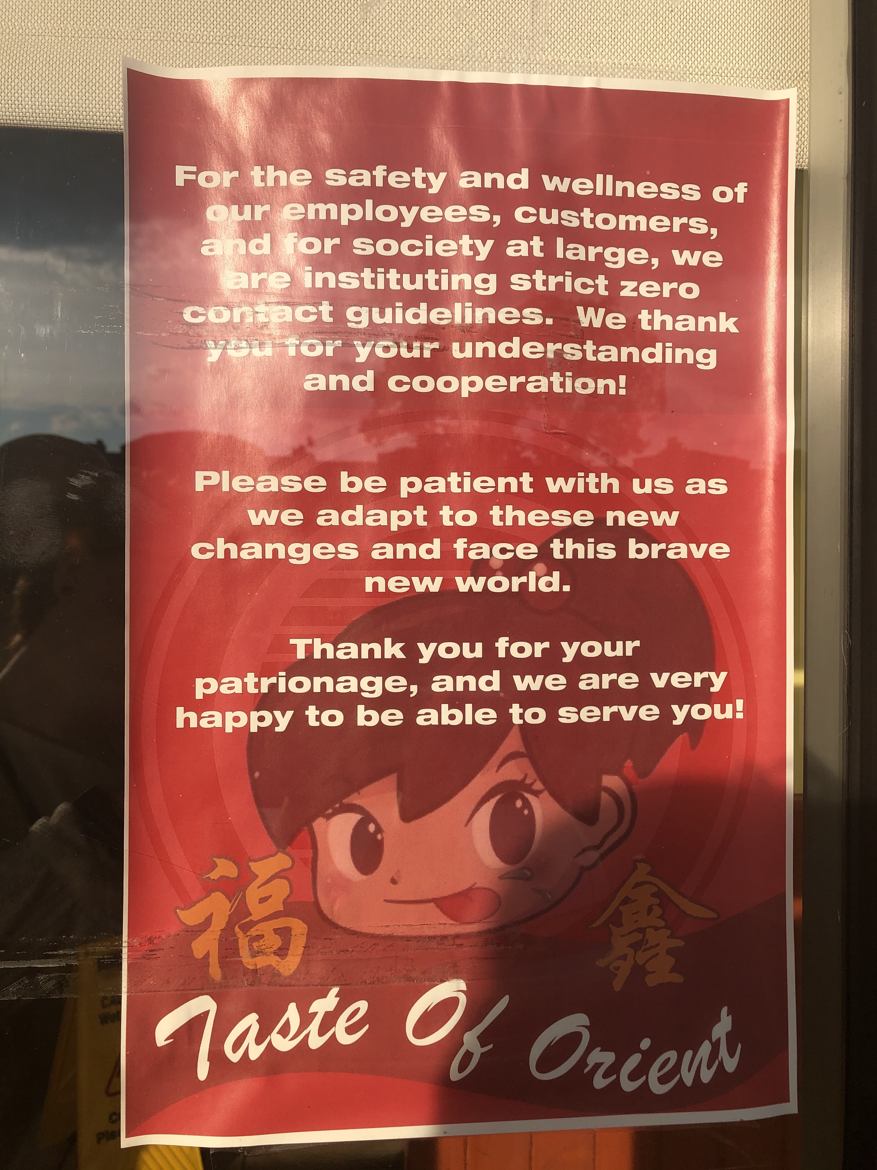 Taste of Orient - Local Restaurant Zero Contact Service Signs
