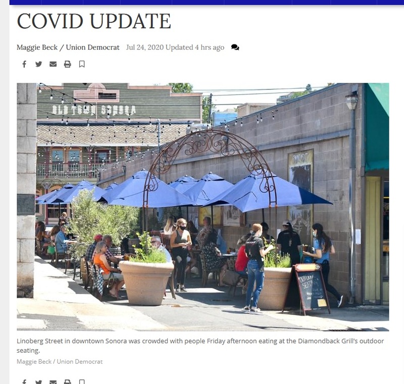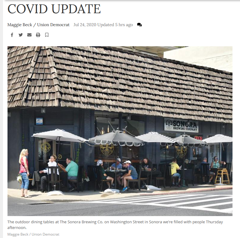These photos from the Union Democrat show how some downtown businesses in Sonora, California are innovating to allow table service that complies with California safety standards regarding COVID-19. These pictures show the new outdoor dining spaces for the Diamondback Grill and Sonora Brewing Company.