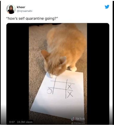 This is just a few of the many thousands of humorous videos people made during quarantine. They show animals playing Tic Tak Toe, a woman exploding Coke into her face, a bulldog hating garbage cans, a small dog taking flight with helium balloons. It's encouraging that people have retained their sense of humor during a most difficult time.
