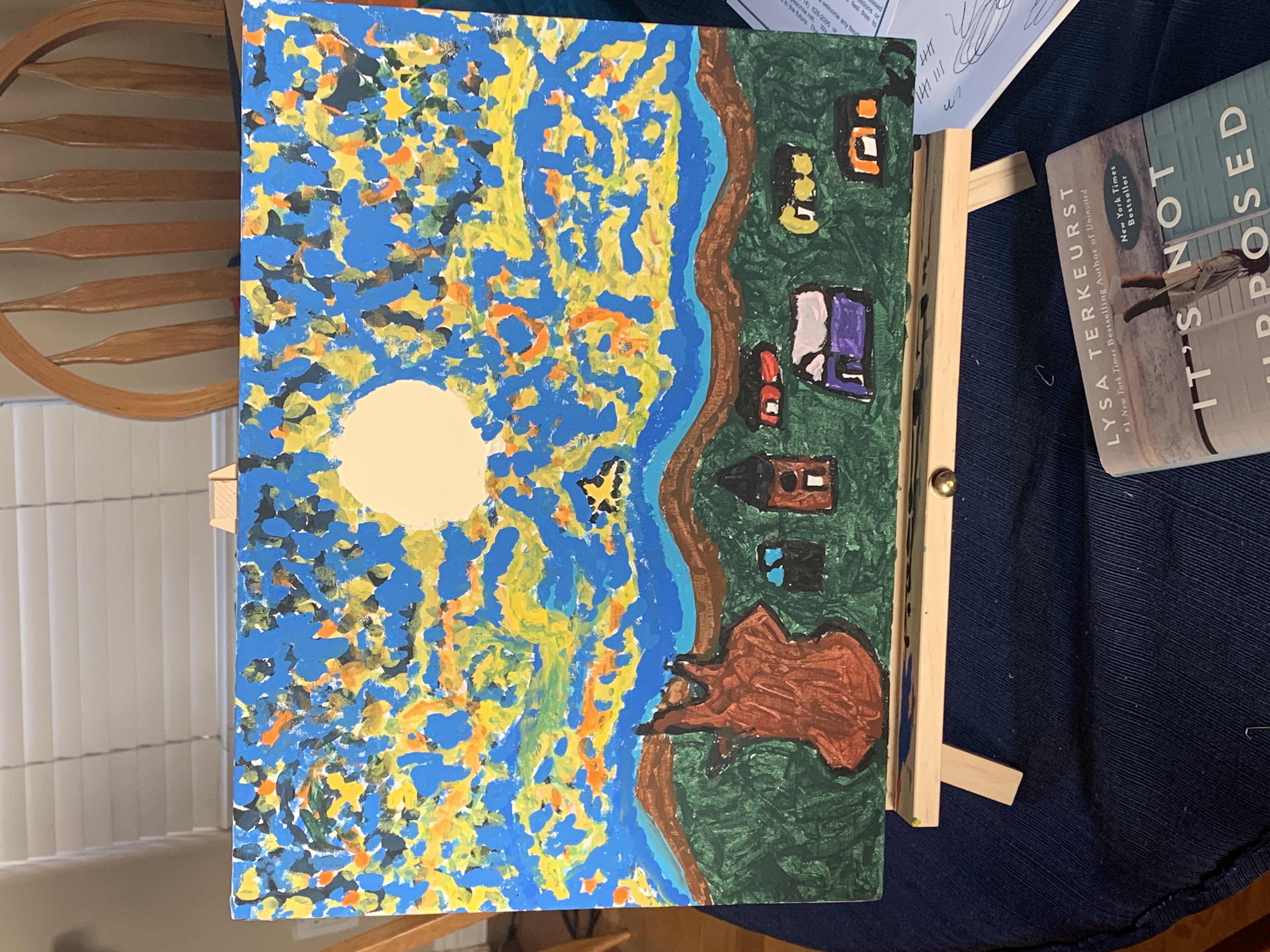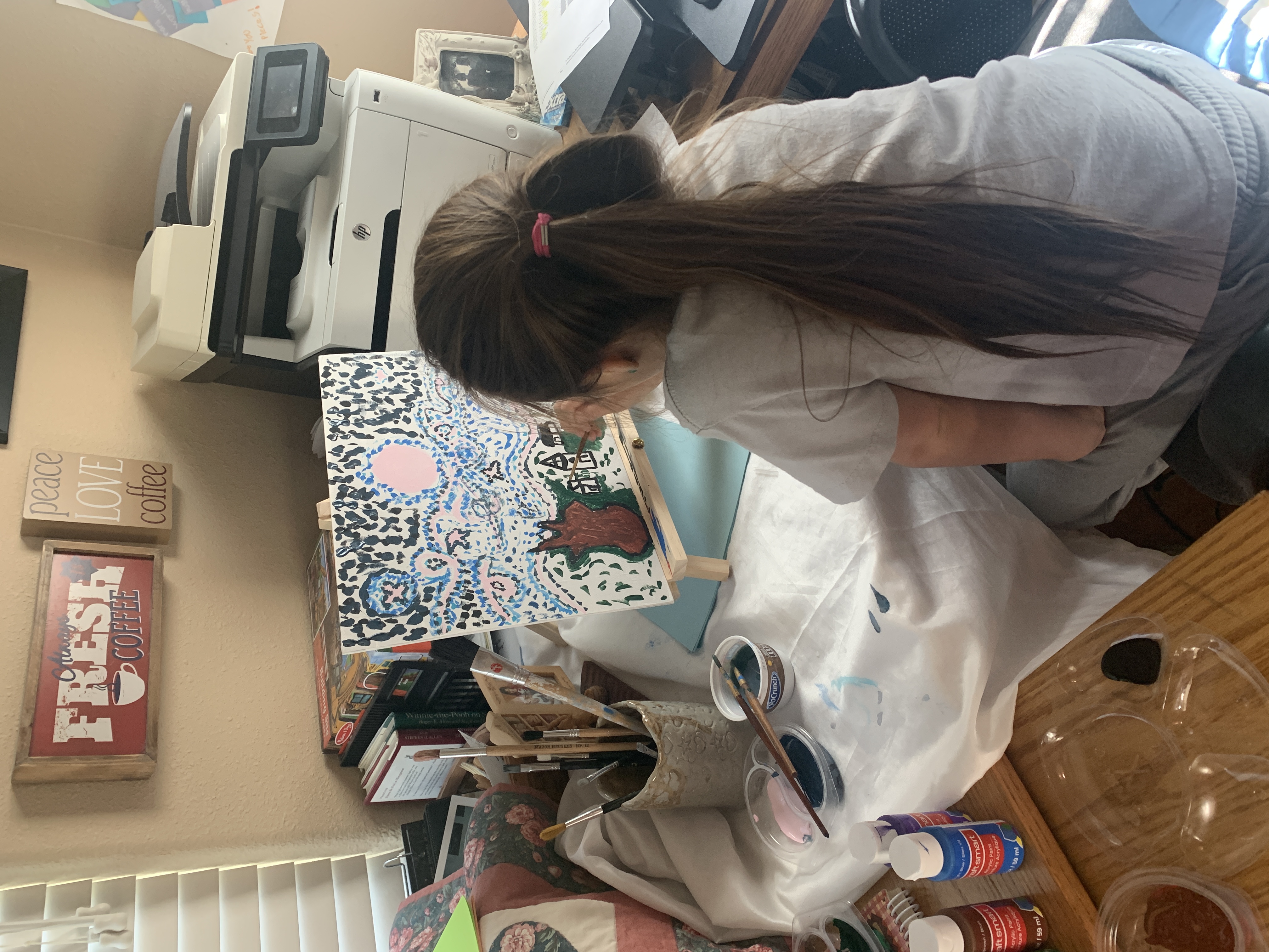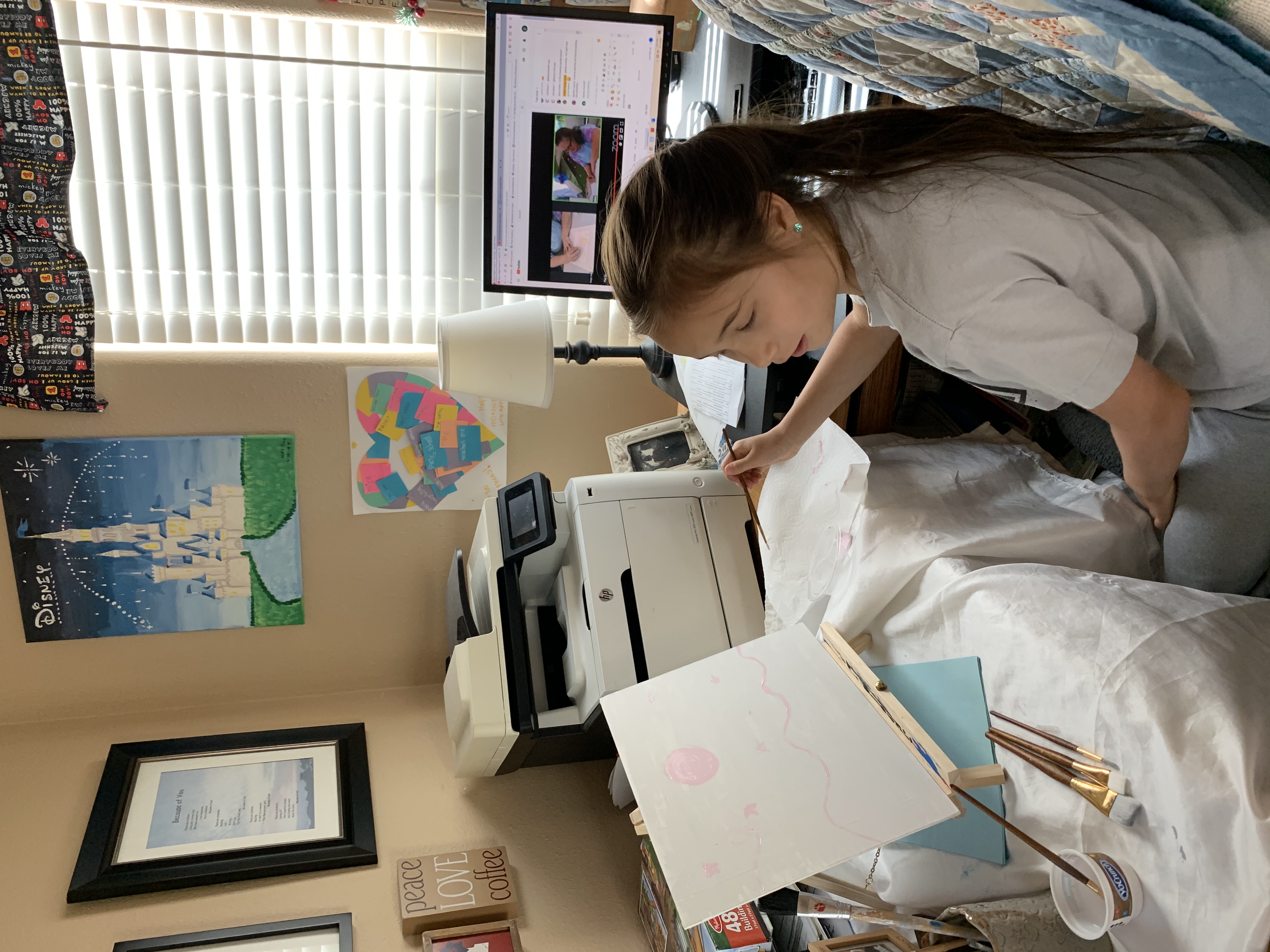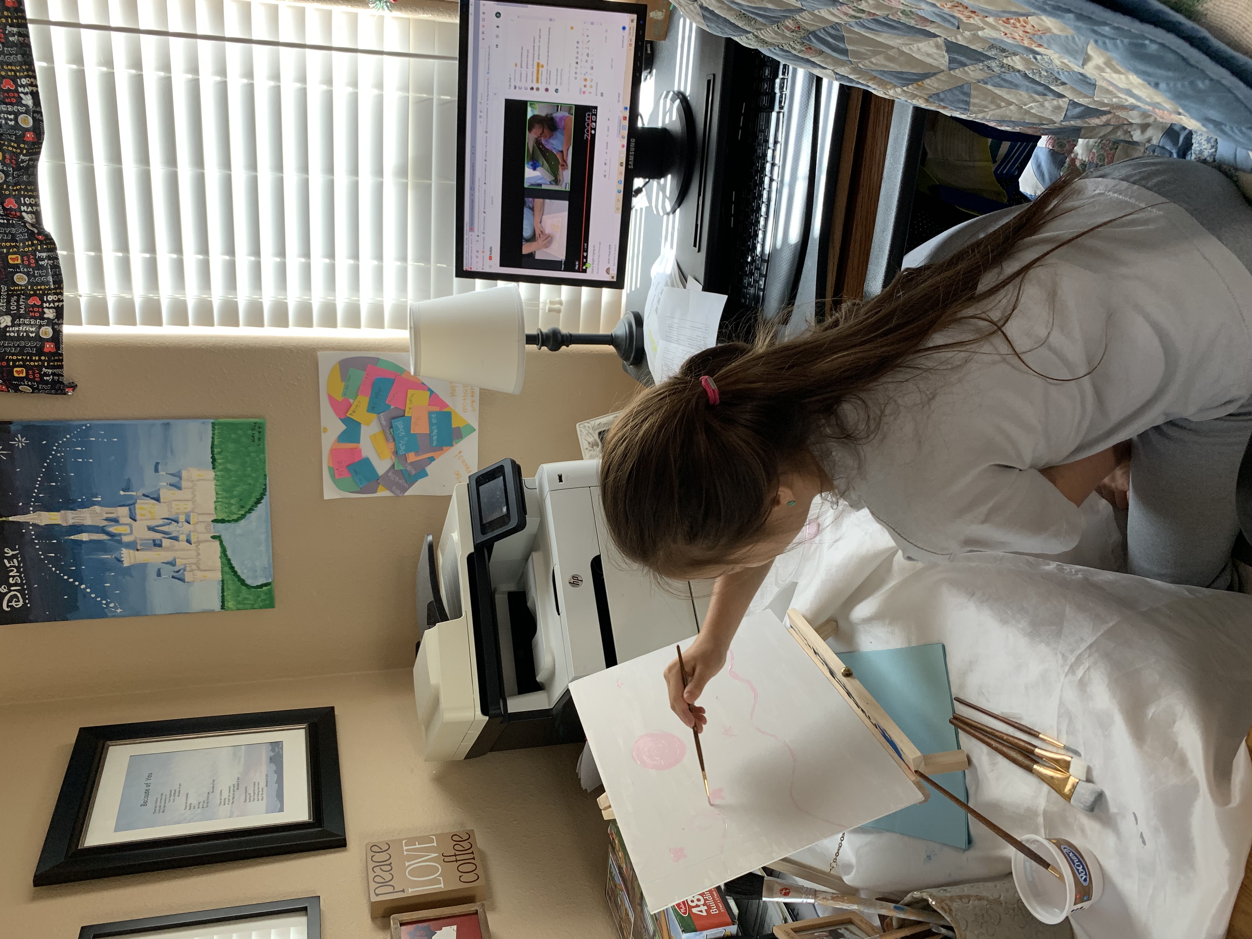 As part of a virtual Girl Scout camp out, Karis, age 9, participates in a virtual art class to paint her version of "Starry Night." Girls Scouts has had activities every week of the summer to help girls continue to thrive.