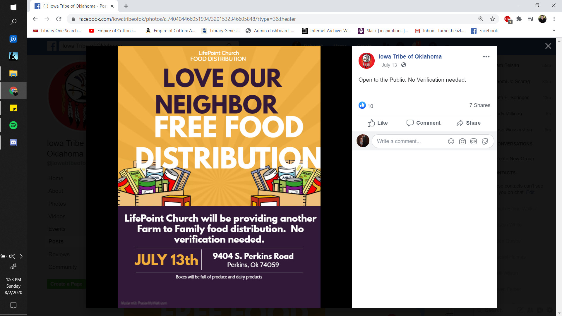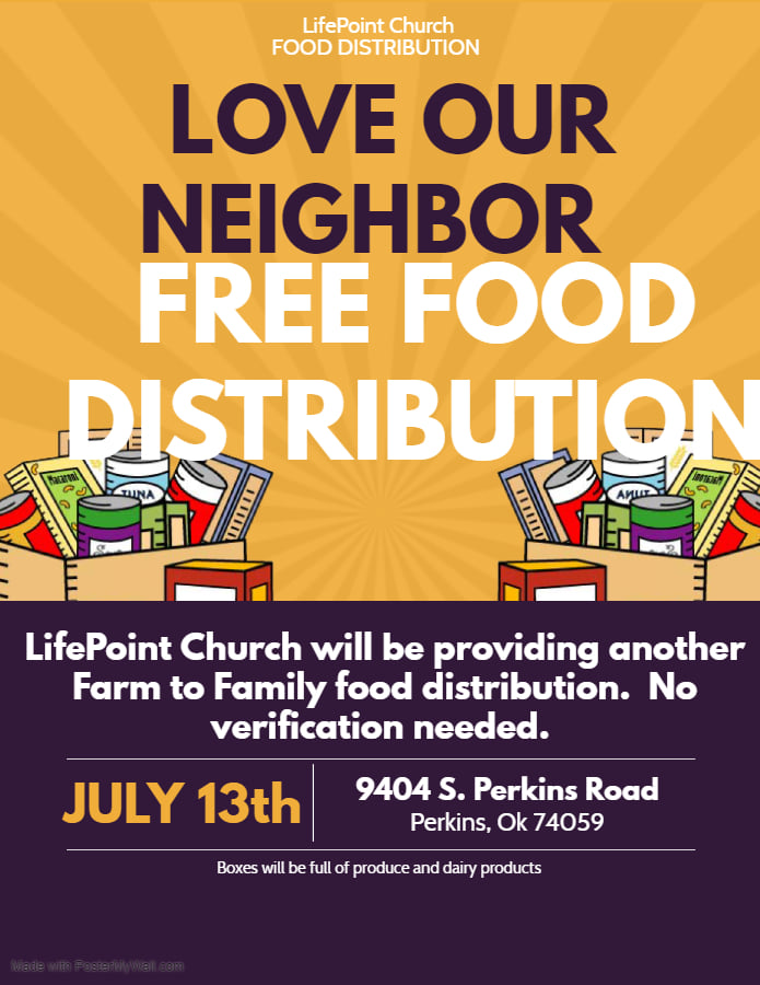 "LifePoint Church will be providing another Farm to Family food distribution. No verification needed."