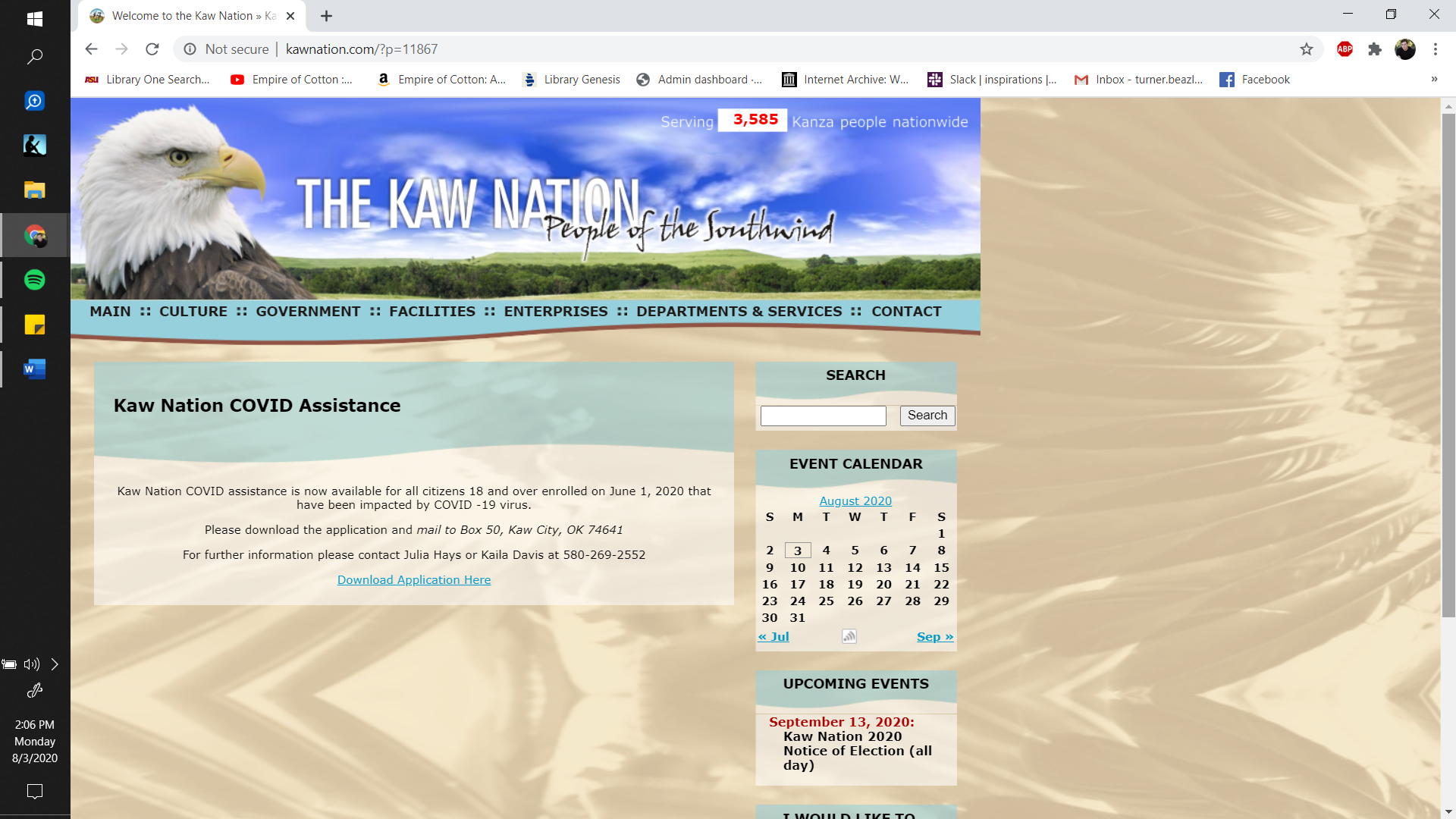 "This application will be used for any Kaw Nation Tribal Member who is currently experiencing a financial hardship due to the COVID 19 pandemic. The Kaw Nation will provide some assistance to help you during this time. You must be an enrolled Kaw Nation Tribal member and at least 18 years of age and not received other COVID-19 funding from the Kaw Nation."