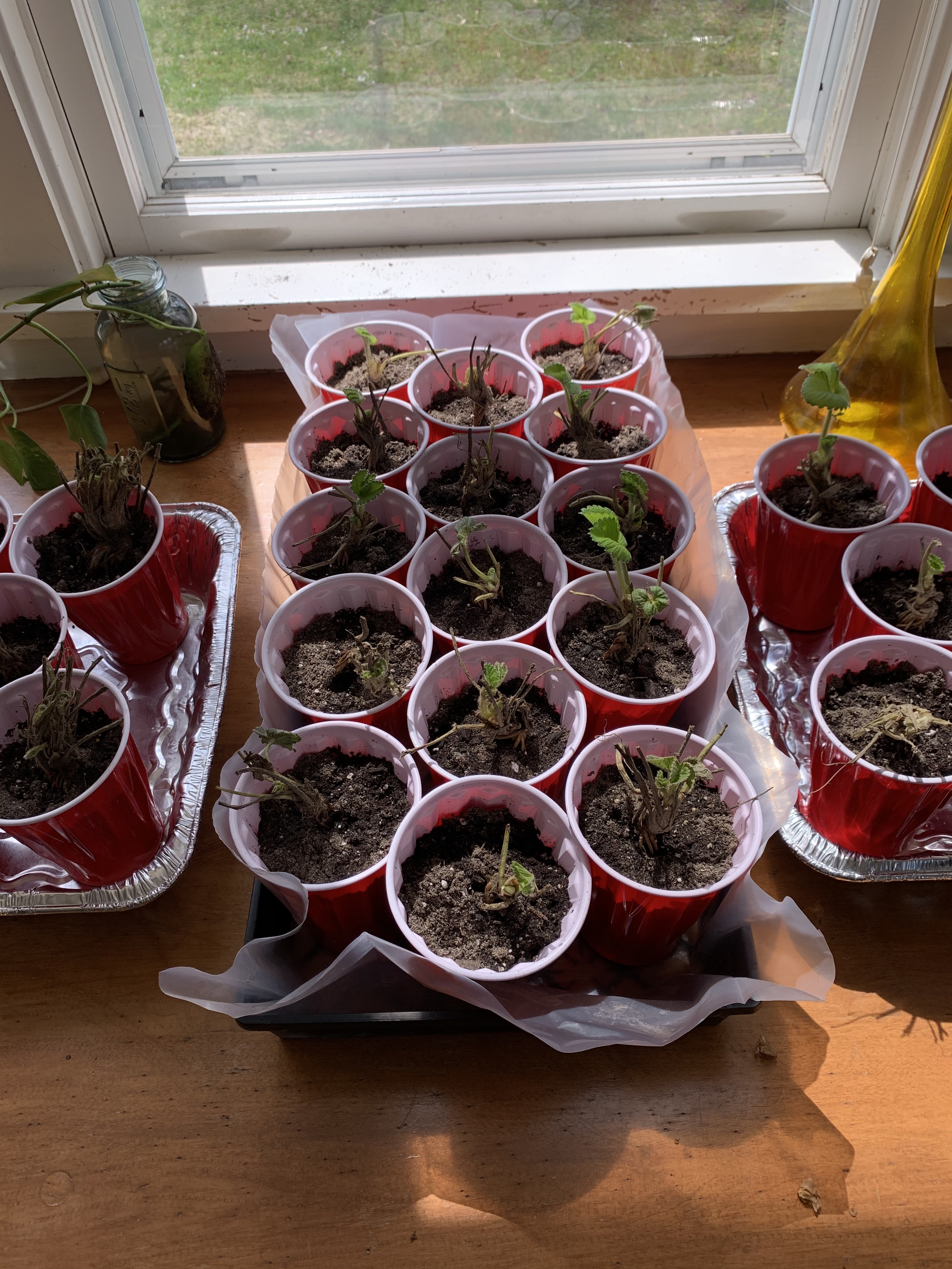 Due to grocery stores being a high-risk environment for COVID-19 my family has become serious about living off our own land. This is the beginning stages of planting strawberry bushes.