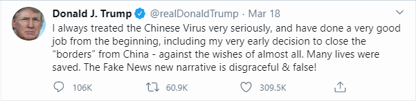 I always look through different social media to be aware of anything that might affect me as an international student from China. Donald Trump’s Twitter is one of them, and there are multiple posts from him using the term “Chinese Virus” which worry me. For clarification, I do not agree or disagree with this post from Donald Trump. It is only educational and worrying for me to see following arguments from different people around the world, including U.S. and China. Both sides are attacking and insulting each other over who should be responsible and extend to political/cultural/social issues, disregarding the reliability of these issues.
