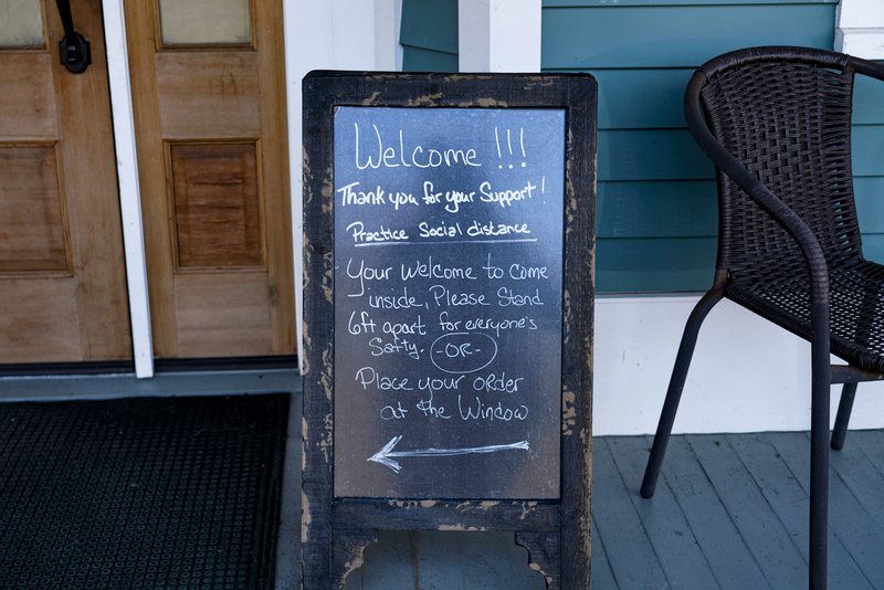 This is a sign at a CT bakery reminding everyone to practice social distancing.