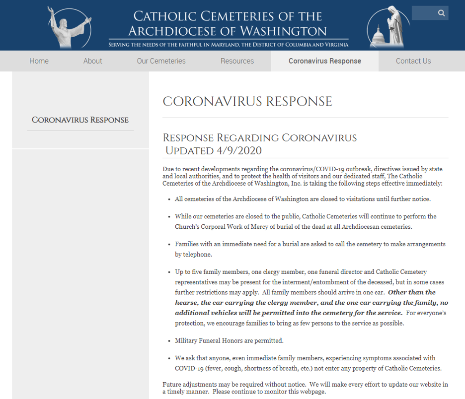 My grandmother passed away. These rules from the Archdiocese of Washington l impact how we have our funeral and burial in Washington, D.C..