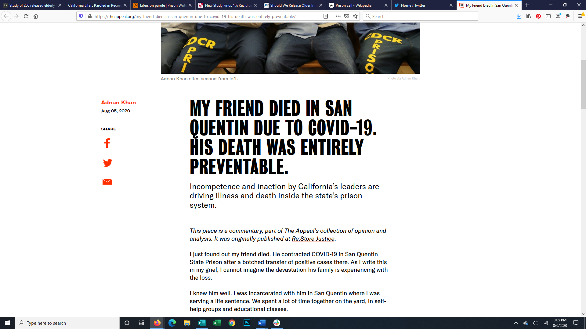 Written by Adnan Khan, a formerly incarcerated person and criminal justice reform advocate, this article explains the death of his friend from Covid and how it was preventable.