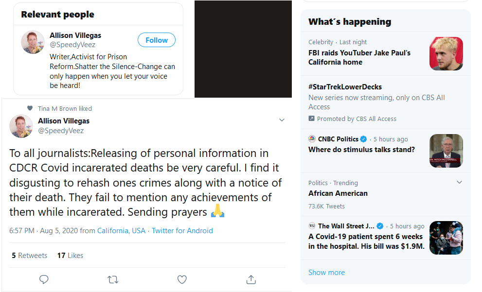 Twitter, social media, incarceration, prison, jail, death, Covid, reporting, news coverage
