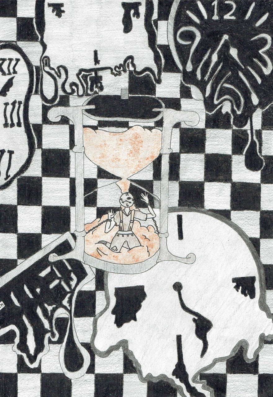 Melting Through Time is a drawing by my 13 year old daughter who felt that this depicted how she feels being in lockdown stage 4. I feel that it is an accurate representation of how many people are feeling irrespective of age: trapped, powerless, confused and wondering how to find purpose and maintain their identity.