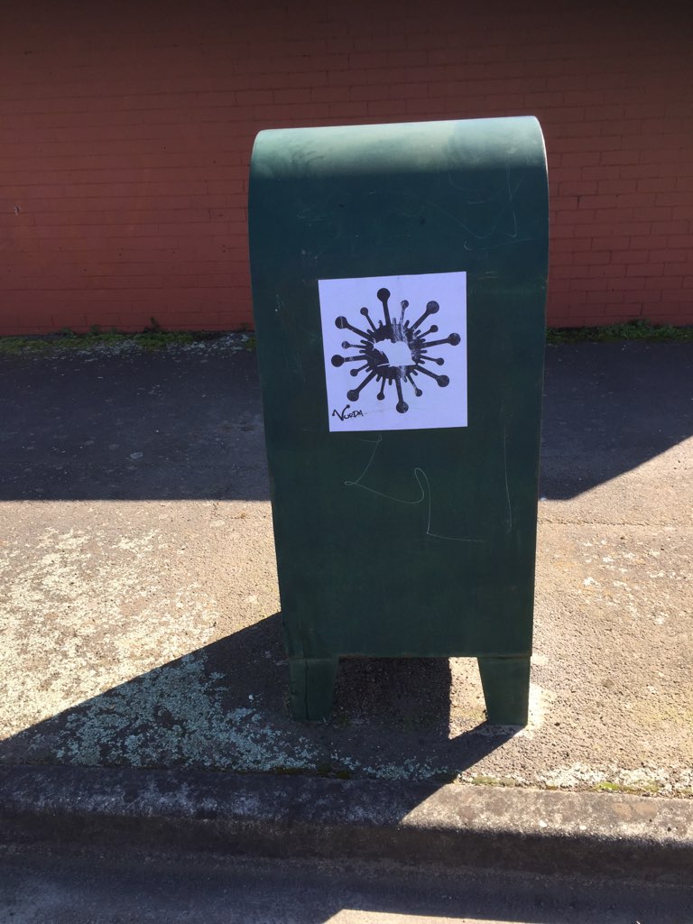 The pandemic has inspired a lot of creativity including street art. This example on a mail distribution box was spotted while walking in the local neighbourhood (walking being another popular pandemic past time). The design has a virus symbol together with a rat. ("The rat" is a colloquial term for Ballarat).