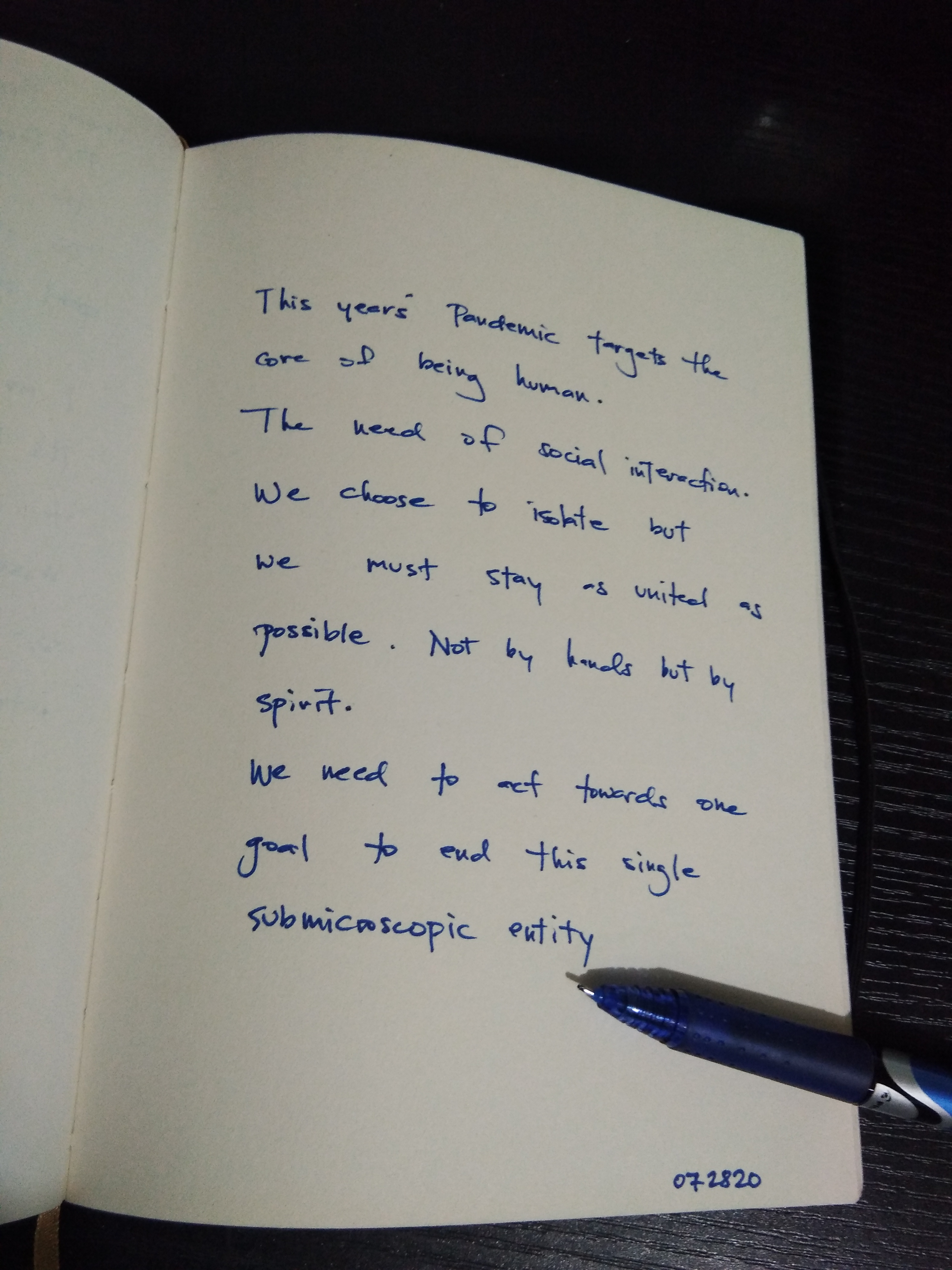 I have been feeling a lot of things right now. The indifferent, numb self battered by how people are not prioritizing life over this health crisis has experienced some form of reawakening. And I've poured my raw thoughts over today's journal entry. a day fresh of the recent SONA, a day away from getting back to the hospital frontlines.