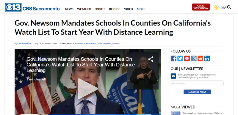 Gov. Newsom Mandates Schools in Counties on California’s Watch List to Start Year with Distance Learning
