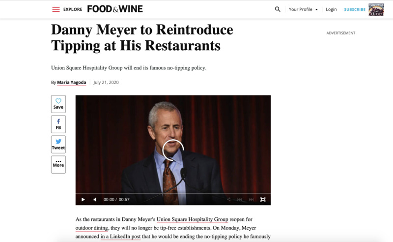 Danny Meyer, one of the biggest names in the restaurant industry backs out of the No Tipping Movement. The No Tipping Movement advocates ending tipping culture in the US to create an equitable working environment and curve the harassment servers can suffer from customers. Due to the pandemic, Danny Meyer chose to allow his servers to make more money by eliminating no tipping from his restaurants and serving a hit to the movement as others panic to follow suit.