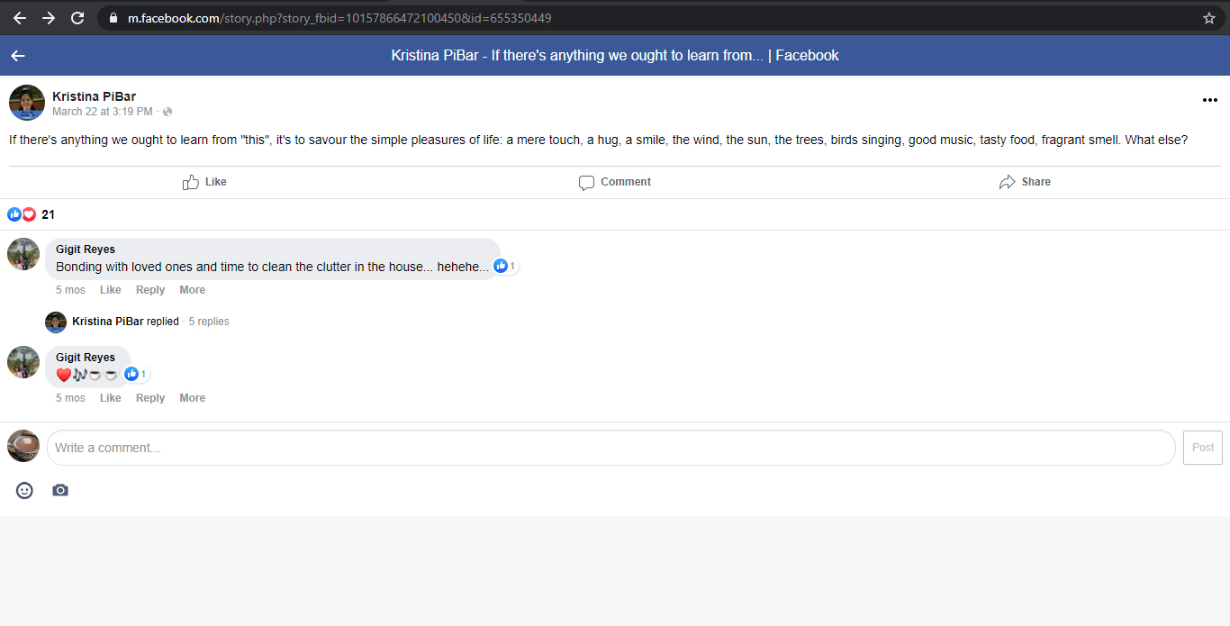 It was a reflection/realization when we Philippines was still on Enhanced Community Quarantine (ECQ). Something I believe, that is a takeaway from all these crazy things we are going through, to savour these when things get back to "normal".