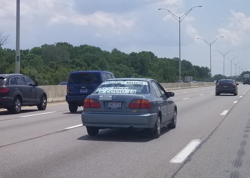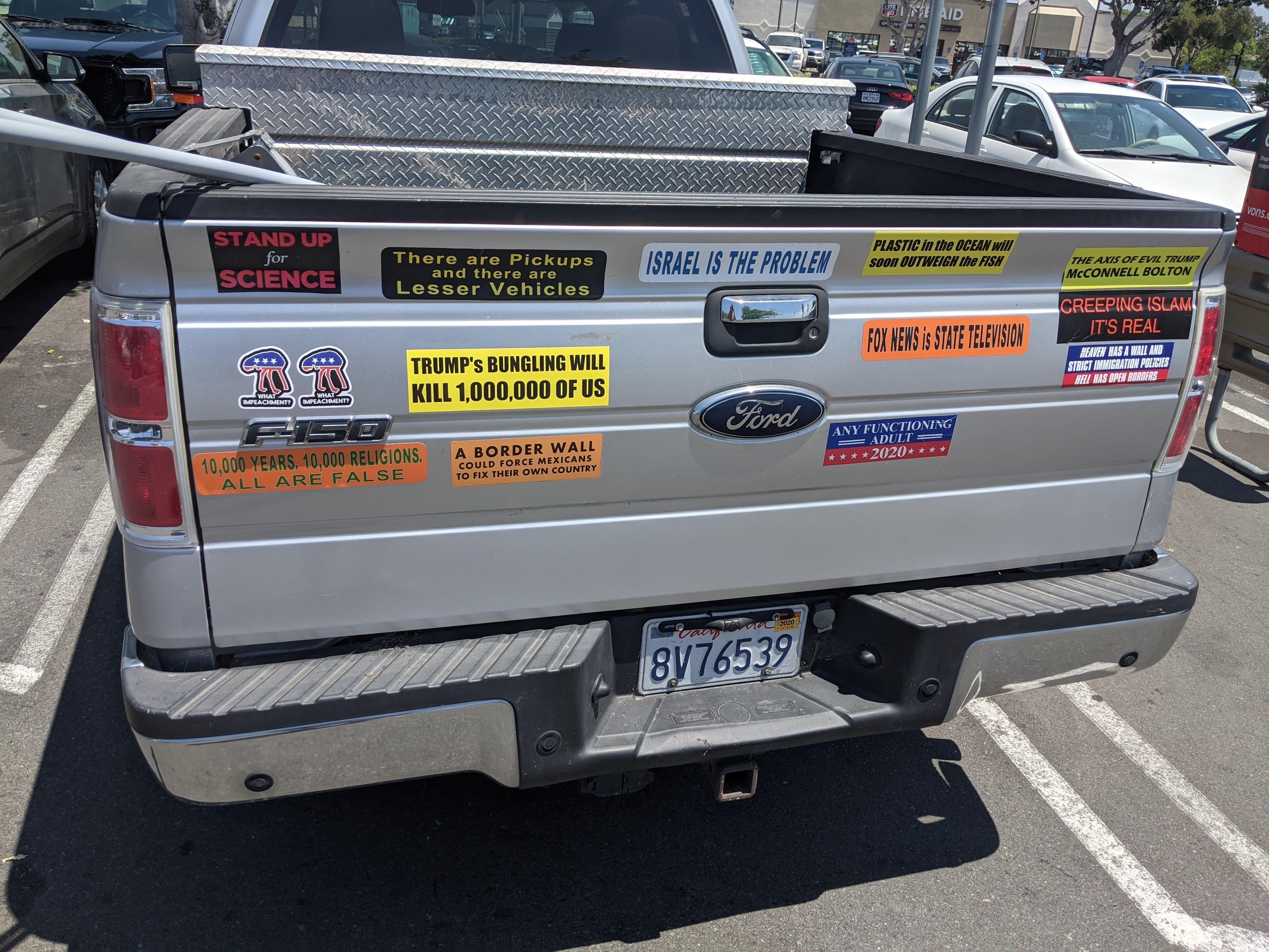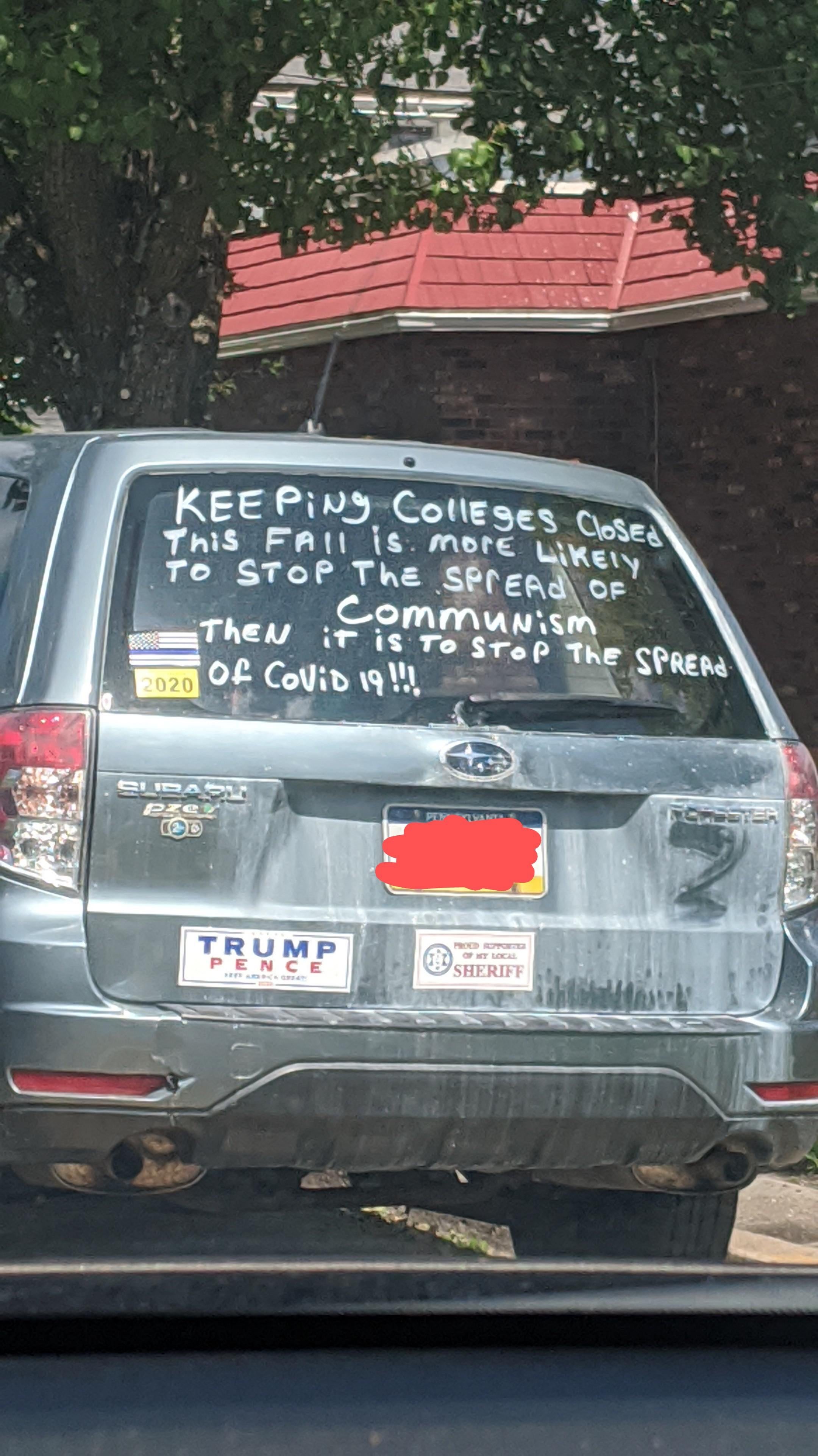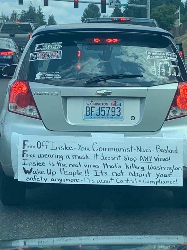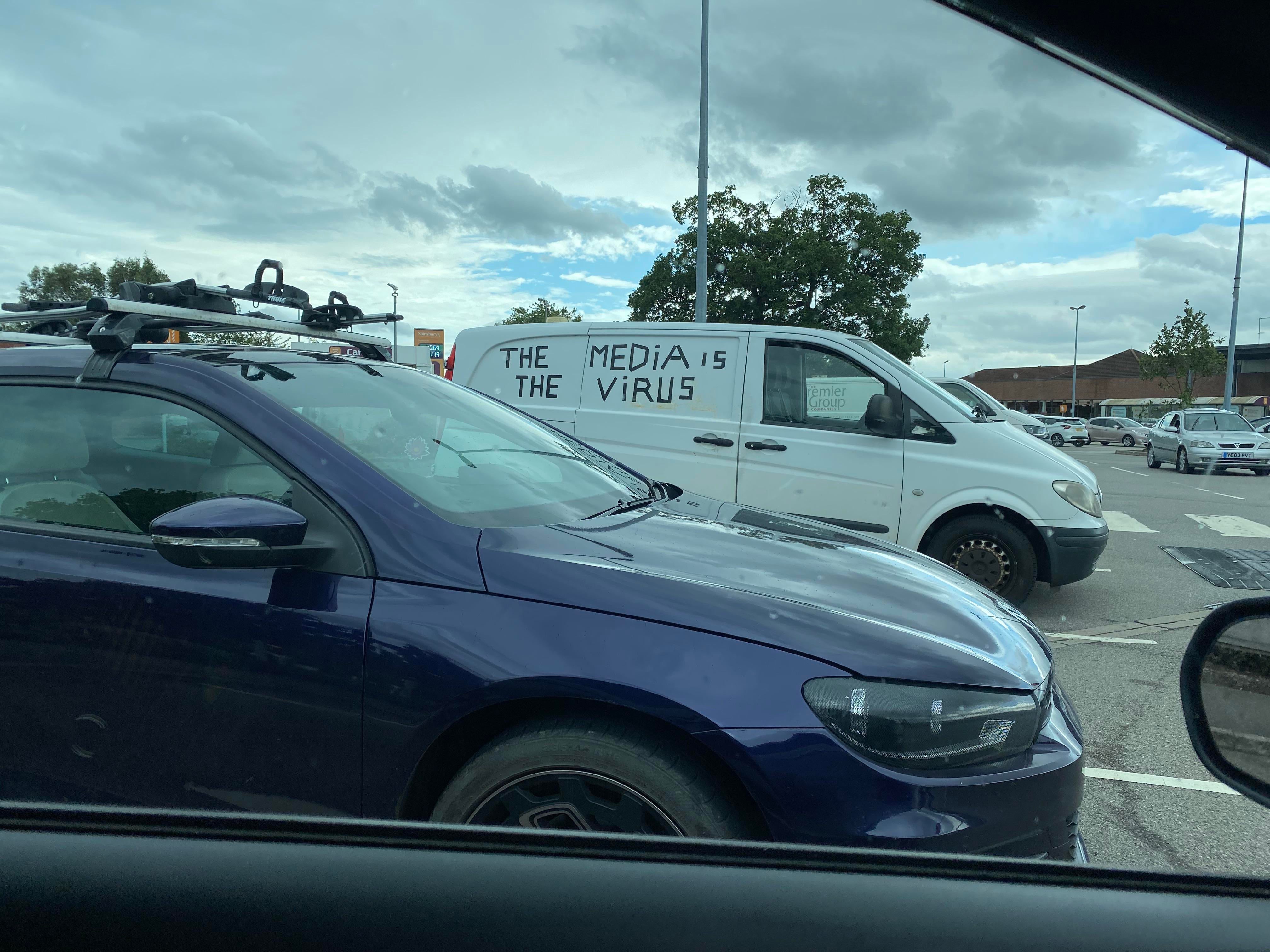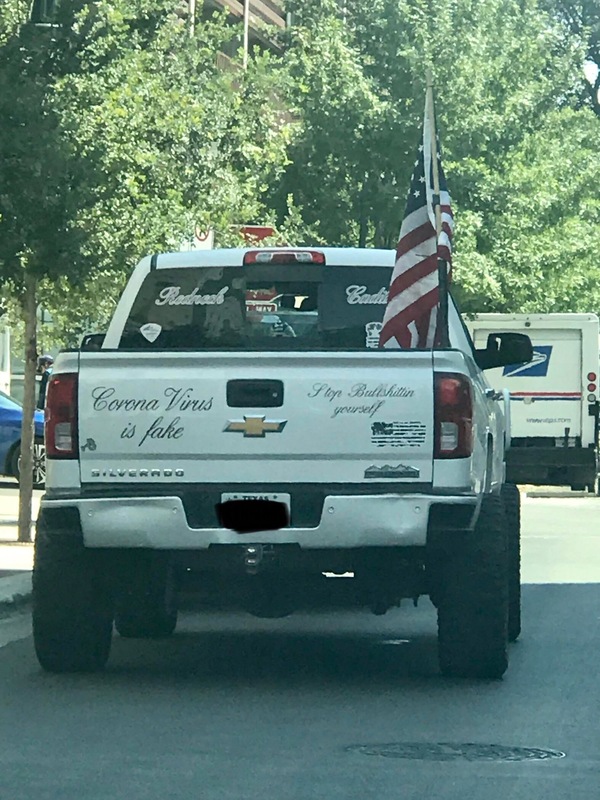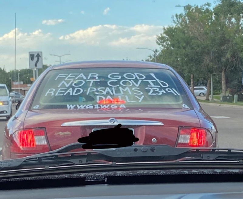 These photos have been selected from material uploaded to the subreddit /r/InfowarriorRides and depict various bumper stickers, graffiti and 'folk art' applied to vehicles and captured in snapshots by various users of the subreddits. These are highly ephemeral sources that capture a fascinating and important aspect of the public response to COVID-19, demonstrating a wide breadth of artistic expression ranging from urging people to take common sense precautions to expositions of elaborate conspiracy theories.