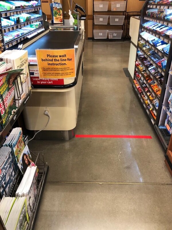 This is a picture of what a customer sees when they are waiting in line to check out. There is also plexiglass by the cashier.