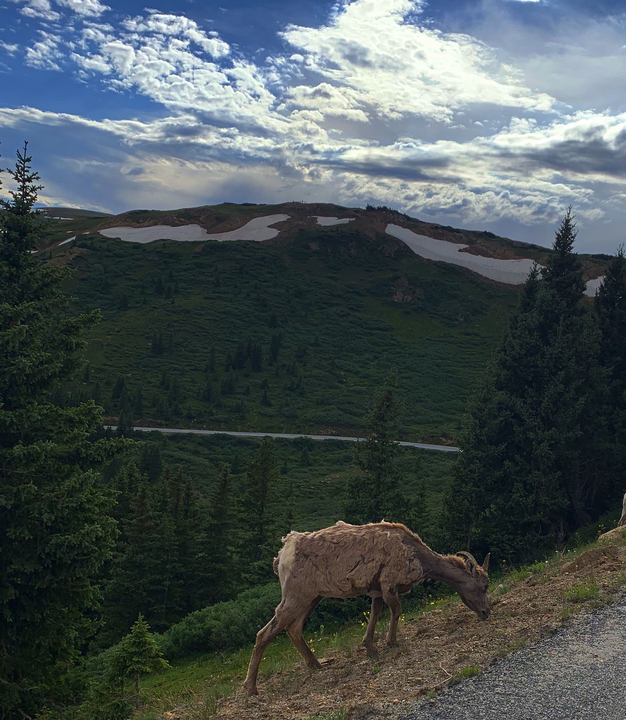 These are all images from our drive through Colorado. The first two images are a landscape scene and a photo of a mountain goat from Independence Pass, a mountain pass in Colorado that is only open in the warmer months because it gets very treacherous in the winter. It was still quite scary when we went in July, but the views were breathtaking. The last photo is from the Colorado Monument. We chose to drive up to experience it, as there were a lot of people there without masks and we felt safest in the car. All of these photos were taken from the safety and comfort of our car.
