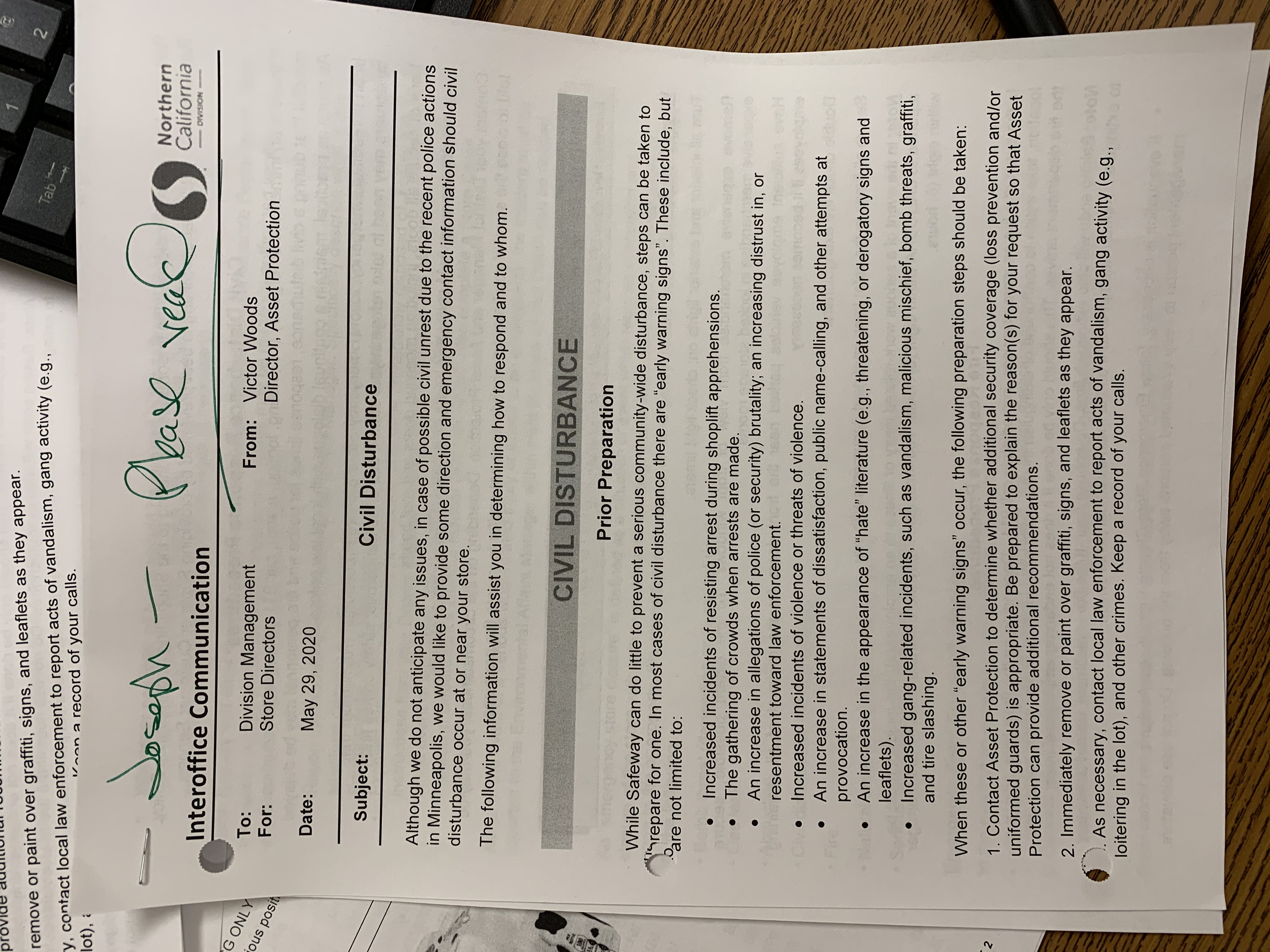 These are pictures that I took at my job. Some are photos of policies and store guidelines, others are of the store "sheltering" before the mass rioting and protesting in late May and early June.