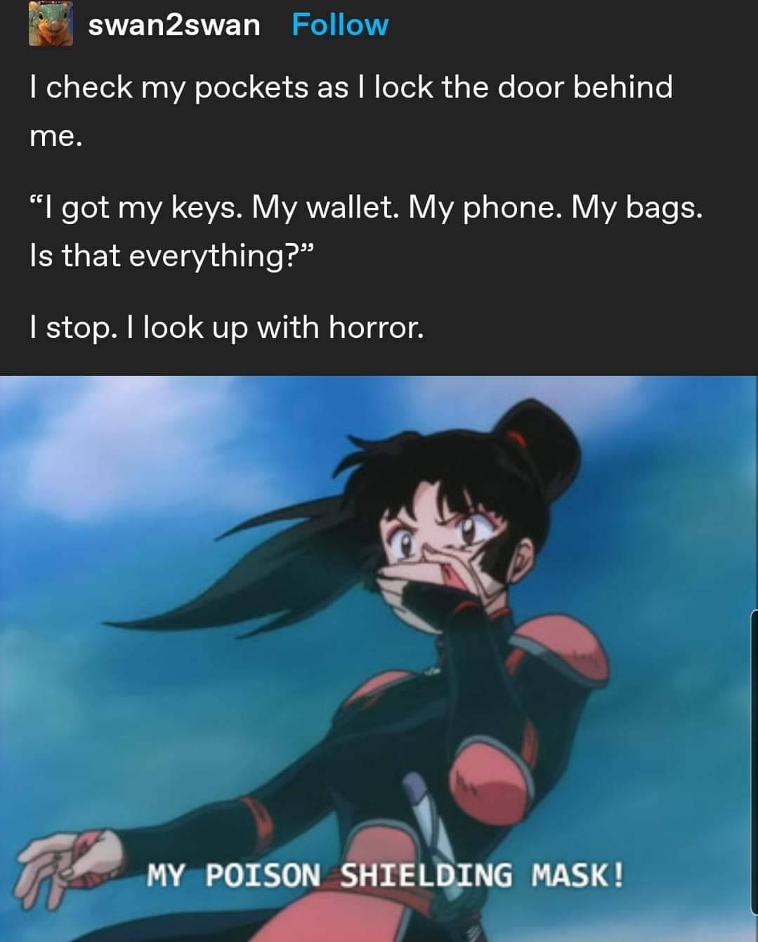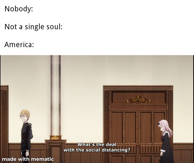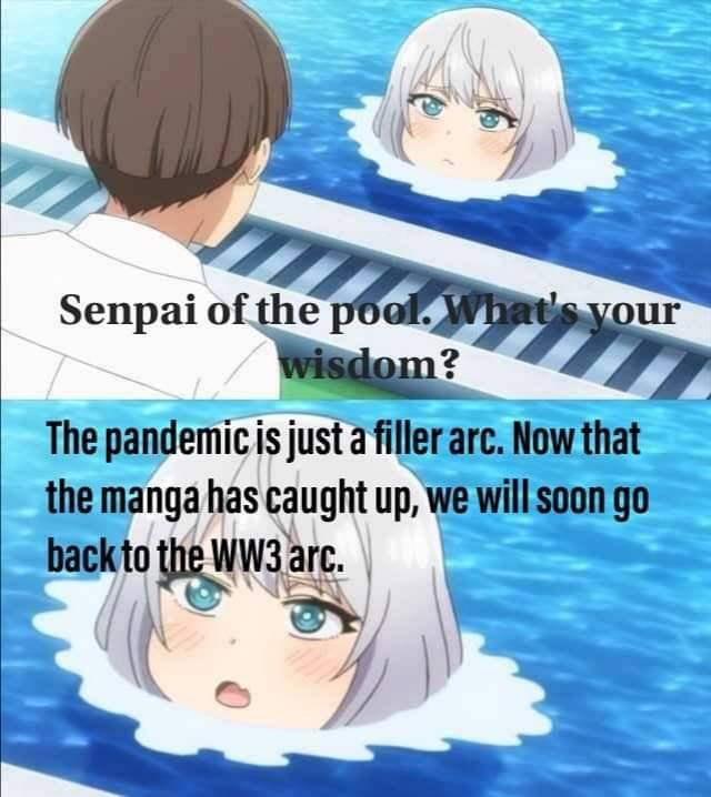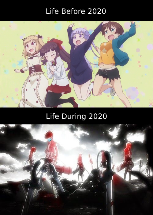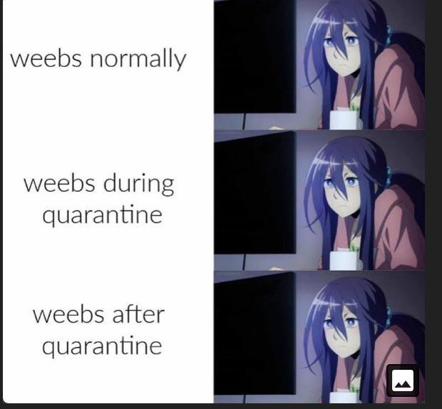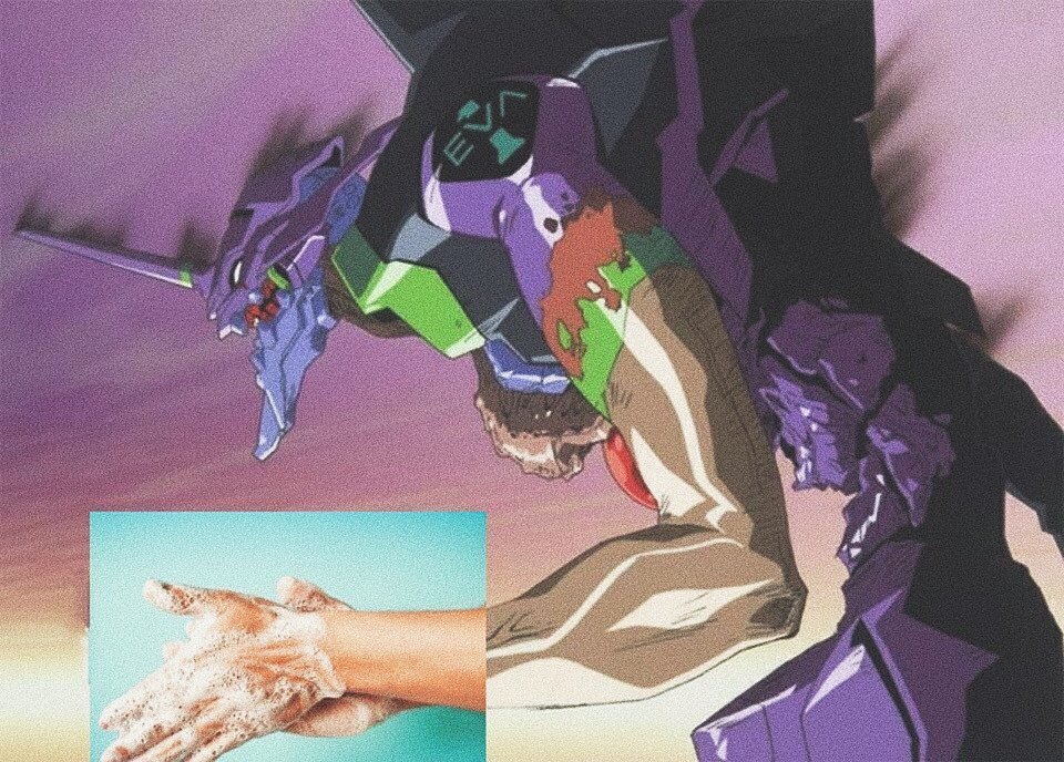 I like anime and have been feeling depressed during the pandemic. Silly memes like these make me smile. (For reference, "weeb" is a shortened version of "weeaboo", which is someone who really likes anime). A lot of people who have nerdy hobbies like watching anime have spent much of quarantine inside indulging in their hobbies but many are wanting to go back to normal life. Some things from normal life that have been canceled due to COVID-19 is the ability to go to anime conventions and bookstores, where many weebs can hangout and meet with each other. The frustration from the "anti-mask" movement and the lack of decline in coronavirus cases has spawned many anime memes promoting mask wearing and proper handwashing during the pandemic. (The image of Unit 01 (the purple robot) "washing" their hands is currently hanging on my bathroom door at home).