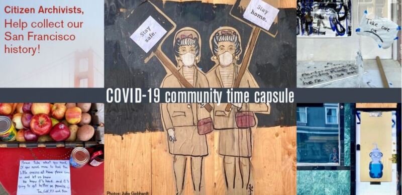 The San Francisco History Center of the San Francisco Public Library (SFPL) is actively archiving all types of materials, in multiple formats, to build a collection that documents and preserves the collective experiences of San Francisco residents during the COVID-19 public health emergency. They are interested in what is happening to San Francisco residents, neighborhoods, schools and workplaces. They are asking local residents to put on their archives hats and help capture what is different in our world today, what we miss, what we’ve created to reflect our new reality, and how we are communicating and living now. With your help, SFPL will build a collection that reflects the many ways San Franciscans were impacted by, and responded to, this public health crisis. All submissions will be preserved in the COVID-19 Community Time Capsule at SFPL and be shared with the public, as well as remain in the City and County Archives of San Francisco (part of the San Francisco History Center), for long term preservation. If you are interested in sharing digital content, please use our online submission form below. Digital content will ultimately be available through our online collection platforms and social media accounts. Submissions may include: photographs, blog posts or social media posts, video or audio, notices, signs or posters, including government notices or signs from private businesses, letters, emails, postcards, community newspapers, personal journal and diary entries, creative work - such as drawings, paintings, graffiti, poetry, recipes and games.