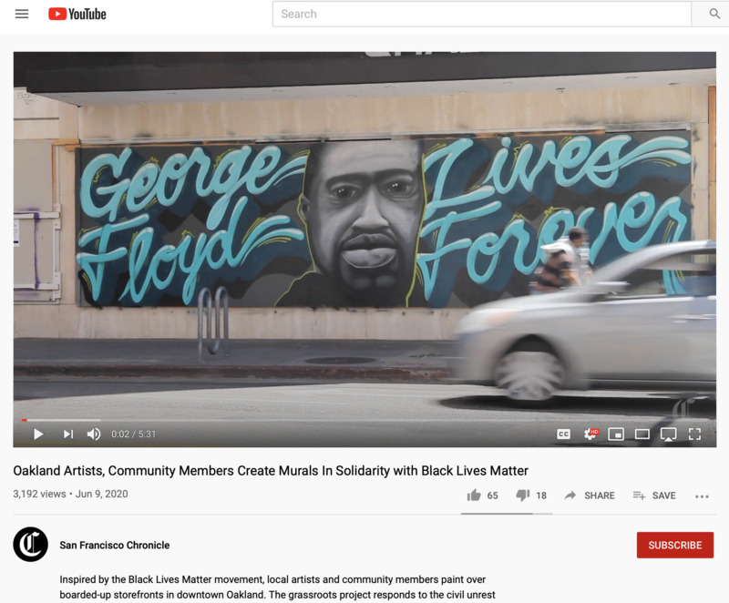 Oakland residents find community and hope as they create street art across the city in the days following the death of George Floyd. Local artists and community members created murals on boarded up storefronts to express their solidarity with the Black Lives Matter movement. Store fronts were boarded up as a result of shelter-in-place orders due to the COVID-19 pandemic and as a protective measure during the protests that flooding Oakland's streets following George Floyd's murder.