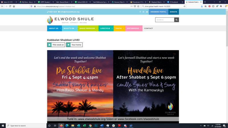 Elwood Shule Shabbat Virtual Services