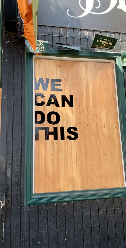 The current pandemic has created visual devices that highlight: the growing severity of COVID, and the community's collective responsibility and attitude towards keeping everyone safe. These signs allow individuals to reflect that they aren't alone, and that they, being a part of the community, are both directly and indirectly accountable for keeping others safe. These signs encourage those to think about the community at large and inspire those that have waning spirits, to remain strong.