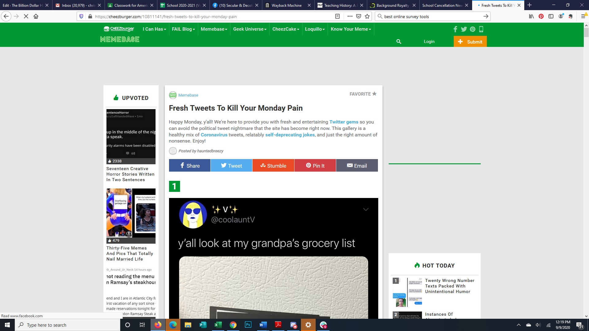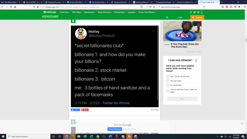 I have chosen a meme to portray Corona Virus. I found it at https://cheezburger.com/10811141/fresh-tweets-to-kill-your-monday-pain