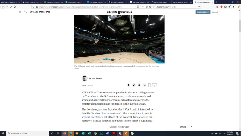 This object is a news article written March 12th, 2020 by Alan Blinder. I found this originally on ESPN, but then later on the New York Times.