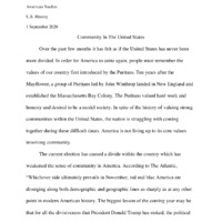 This curriculum was designed for a junior level US History course. Students are asked to identify core American values and to formulate a claim in response to the essential question, "Is America currently living up to its core values?" The curriculum and student essays are being submitted to the JOTPY archive to provide a picture of how teenagers view America as a whole in 2020. They also give insight into the vast array of perspectives teenagers living during the COVID-19 pandemic have based on the diversity of their current life experiences.