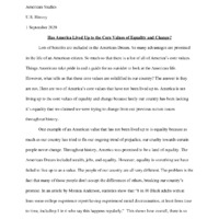 This essay was produced as a part of the American Studies program at California High School in San Ramon, California. The essay is in response to the prompt "Is America currently living up to its core values?" This essay argues equal rights in America. It also includes references to the following modern events BLM.