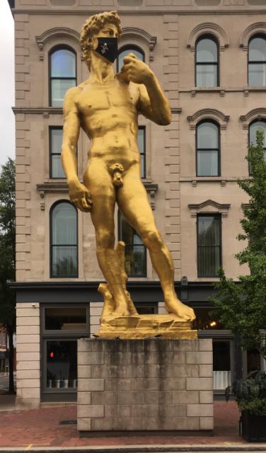 I recently visited Louisville for the first time and stated at the C21 Museum Hotel, best noted for the 30-foot tall “David (inspired by Michelangelo)” (2011) by Serkan Özkaya (1973-) that stands out side it. With the pandemic going on, he's been been outfitted with a mask ;-)