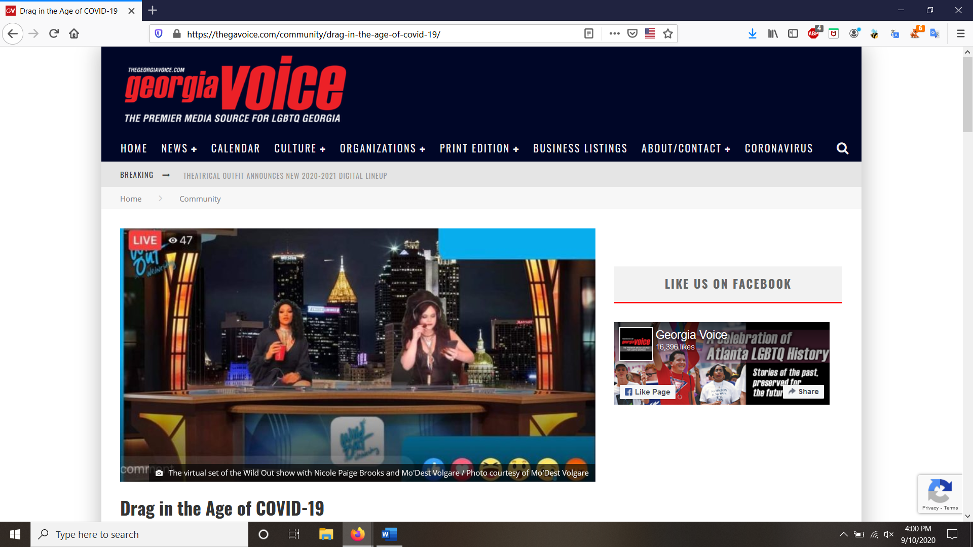 This news article explores the effect the COVID-19 shutdowns have had on drag performances. Since March, Atlanta has banned gatherings of over 50 people in an attempt to curb the spread of the virus. For drag queens in the Atlanta area, this means that they have not been able to perform live since March. However, many have found virtual performances to be a viable alternative. Some drag queens, in fact, are glad that they are able to work virtually now as they had been wanting to get out of performing at bars. While virtual performances don't make as much money as live performances, the audience is a lot larger than if they were performing live.
