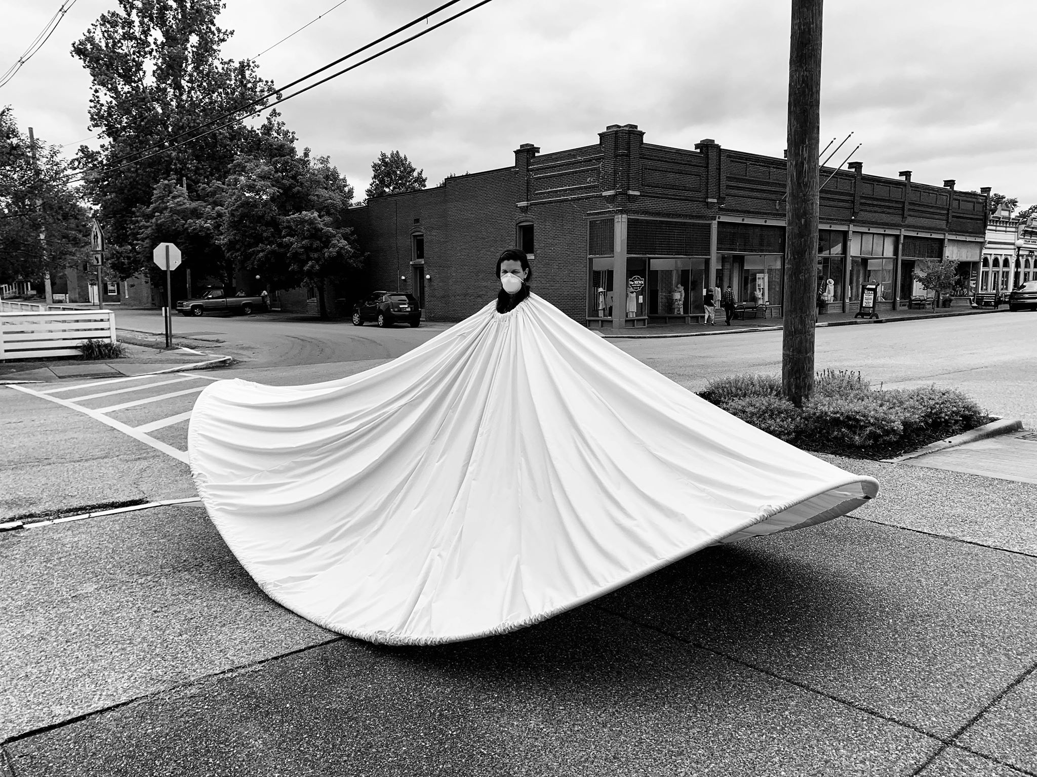 Photographed by Mary Ann Michna, artist Sarah Aziz visits New Harmony, Indiana to do a photoshoot in her COVID inspired fashion