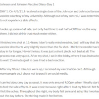 Johnson and Johnson Vaccine Diary-Day 1 |