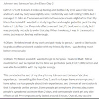 Johnson and Johnson Vaccine Diary-Day 2 |
