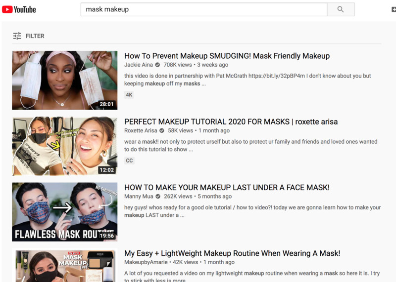 I have noticed that the youtube have increased number of videos regarding how to keep makeup budge proof under your masks. I feel like this helps people to still feel beautiful despite having a mask on as well as follow the CDC guidlines.
