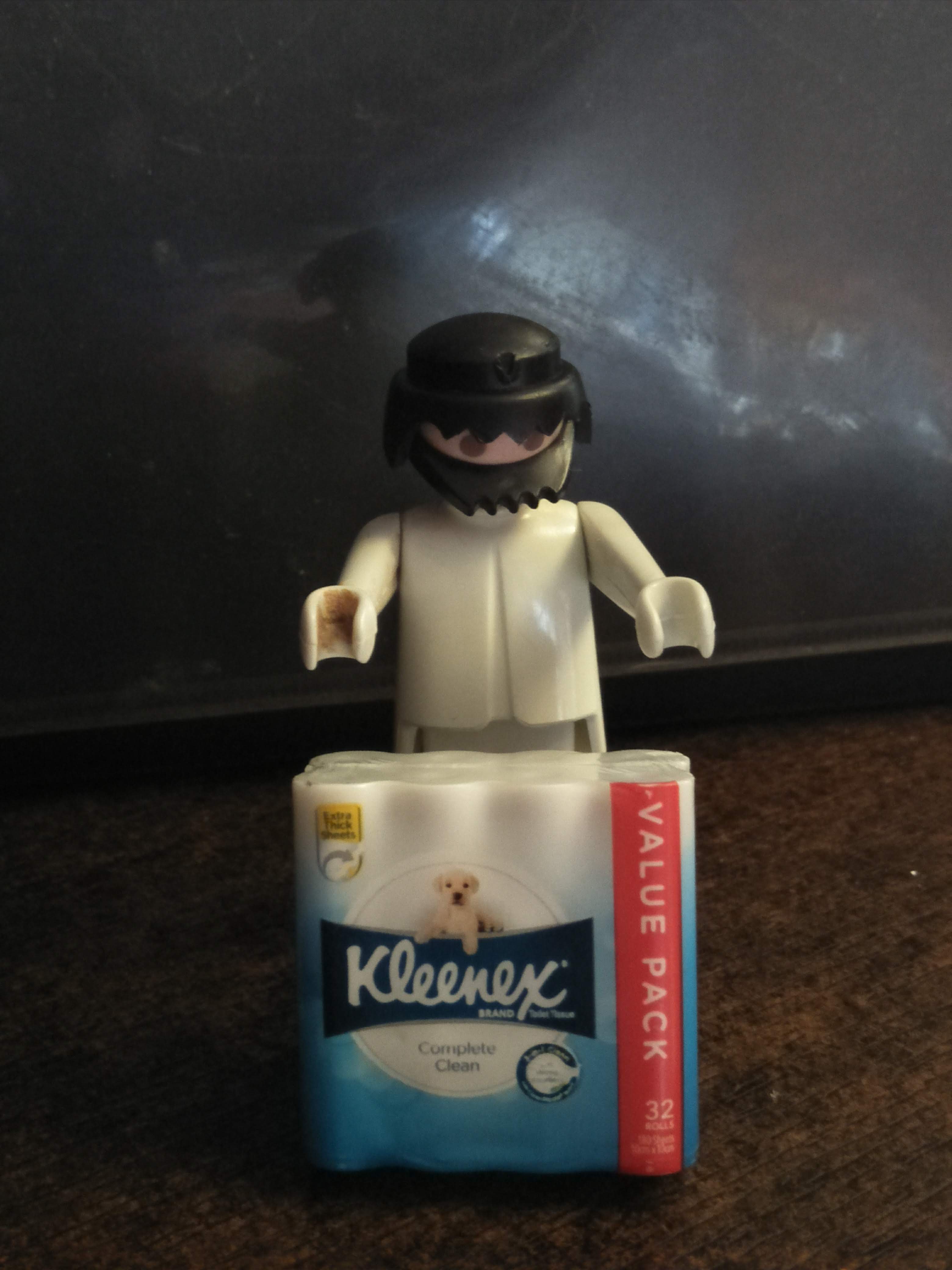 I wanted to convery my feeling when the Victorian government told us we are going back to lockdown again. I made this from my youngest daughter's toys, including a mock mini toilet paper distributed as a promotion by supermarket chain Coles.