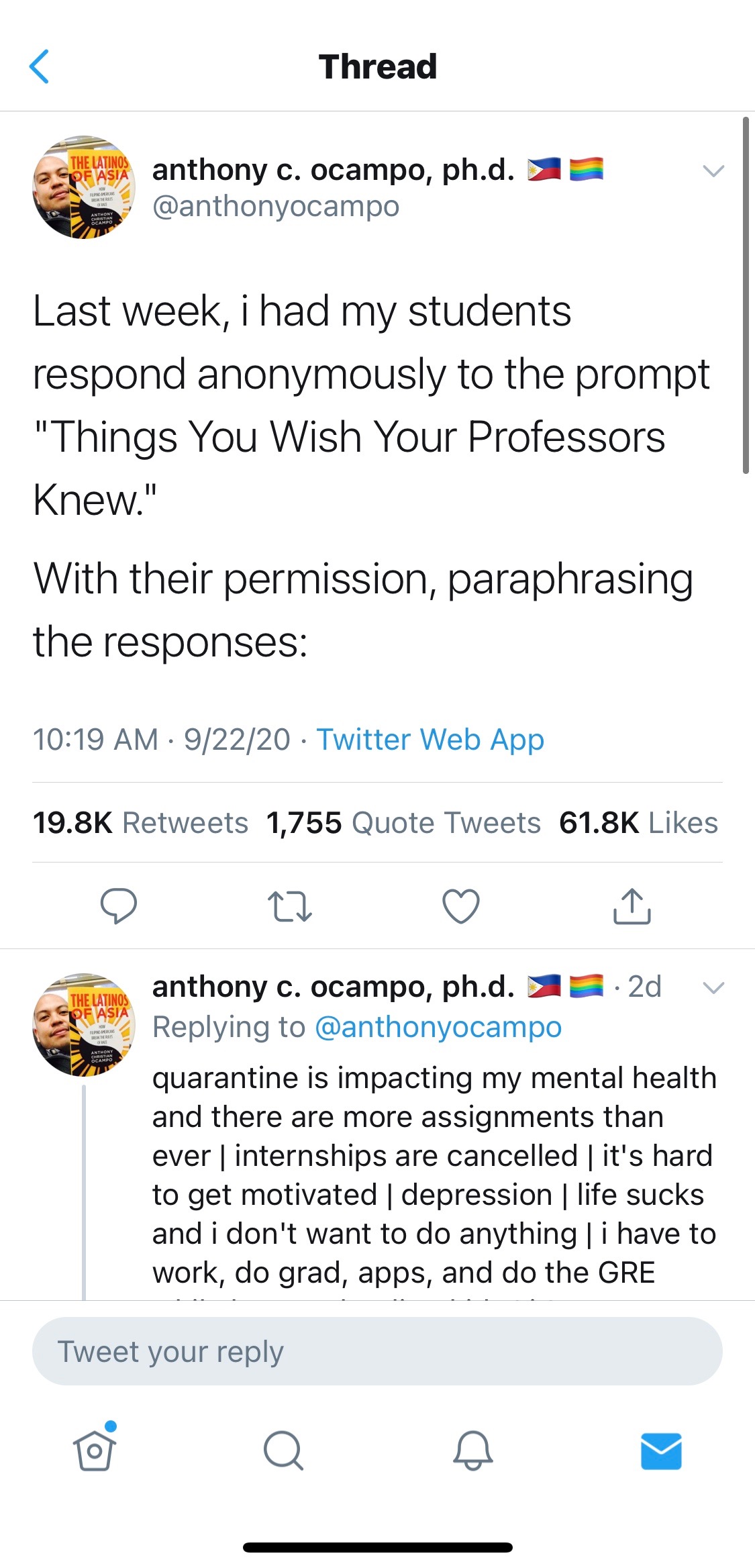 A professor shared student's anxieties about the Fall 2020 semester. Most of the responses show the toll the pandemic has taken on student's mental health. Another common theme is that many students face a multitude of difficulties when it comes to online school. Whether it's finding the motivation to go to class or how a student's home-life creates a toxic environment for online learning.