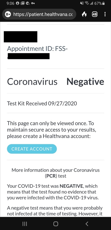 When I woke up this morning (9/28) I already had a text message saying my results were in. Negative! I'm very glad for that. Honestly it was so fast and easy I was sort of surprised considering the mess testing was at the beginning of the pandemic.