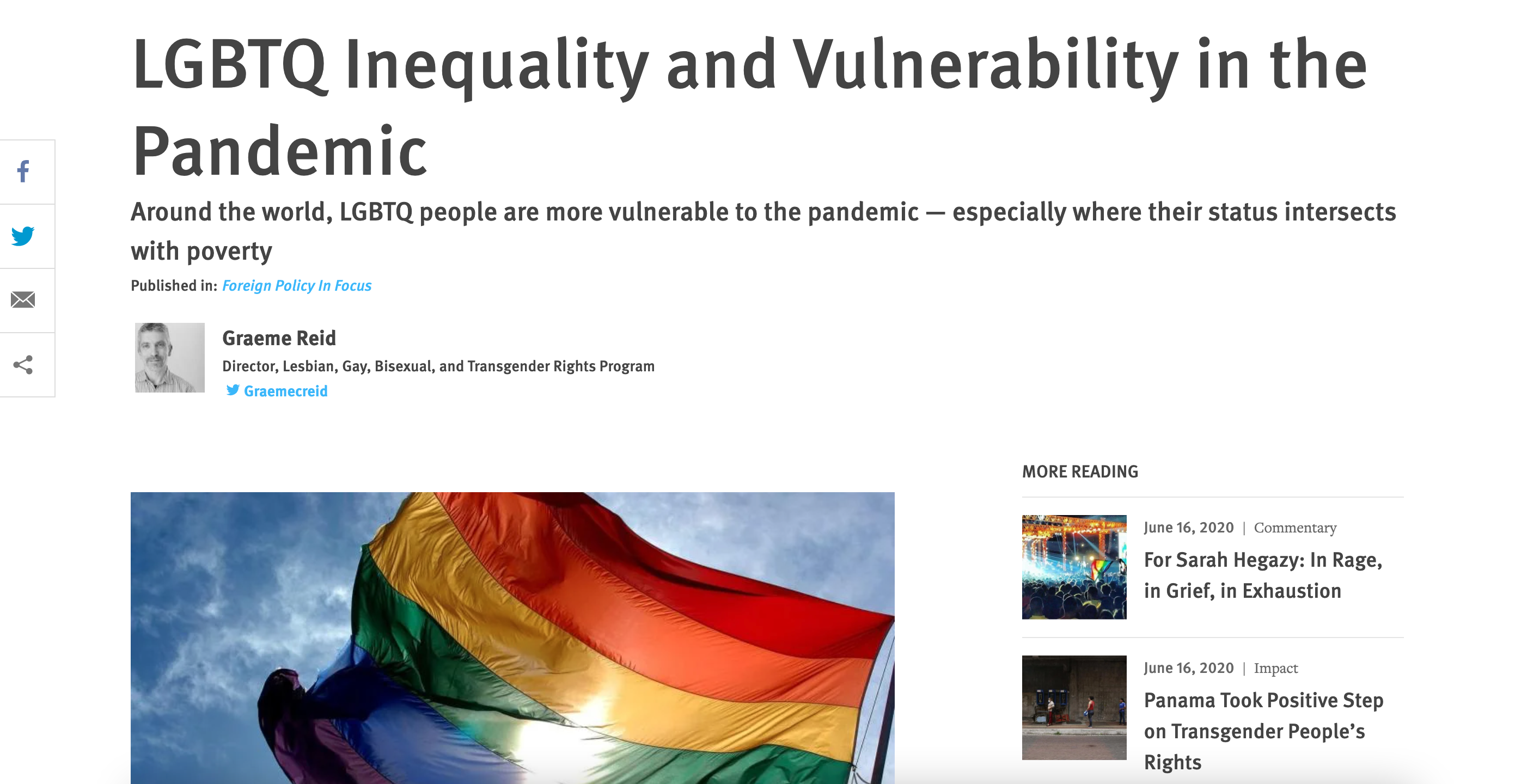 "Around the world, LGBTQ people are more vulnerable to the pandemic — especially where their status intersects with poverty."