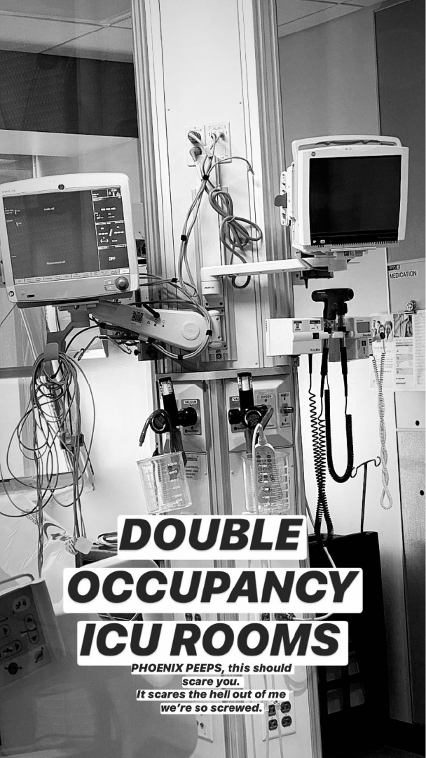 As a nurse at St. Josephs Hospital, my sister is at the heart of this pandemic. She is watching as her workplace is overrun with patients infected with the virus. Taking every precaution possible, she is doing everything she can to help her patients and the other nurses on her unit. Since the influx of positive cases is overwhelming the hospital, nurses from other units are transferred and trained on the COVID unit. Neonatal unit nurses, Neuro-ICU nurses, and anyone else that can help is fighting on the front lines of this pandemic. This is a screenshot from her Instagram, pleading with anyone who will see it, the consequences of not taking this virus seriously.